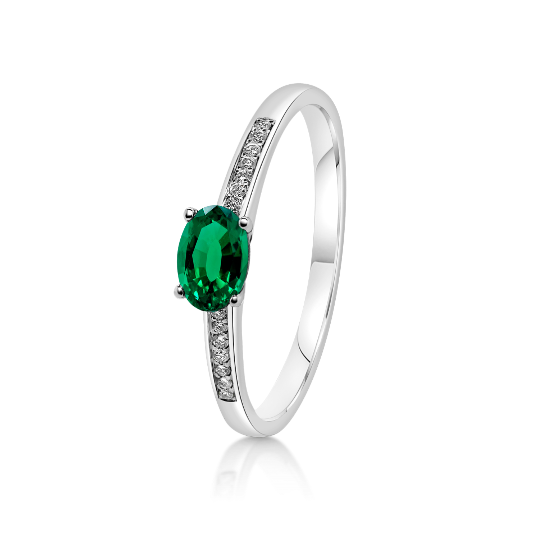 Inel din aur alb de 18K, cu Smarald și Diamante naturale