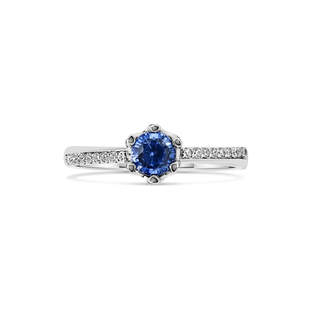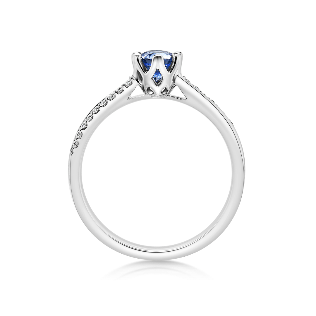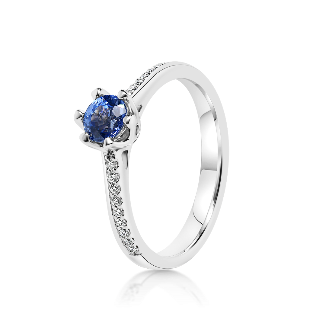 Inel din aur alb de 18K, cu Diamante albe de 0.09ct. și piatră centrală Tanzanit de 0.31ct.