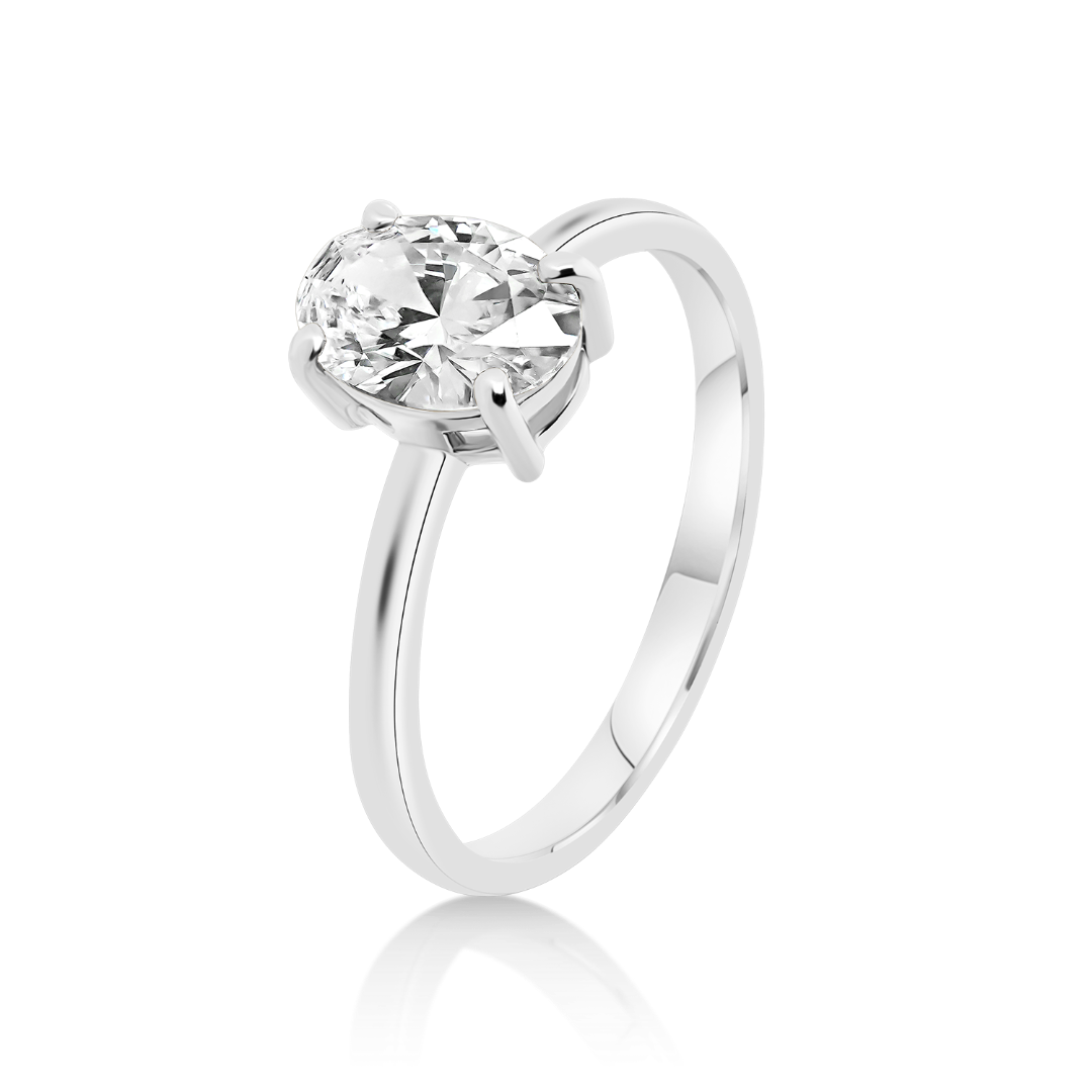 Inel de logodnă din aur alb de 14K cu Diamant oval creat în laborator.