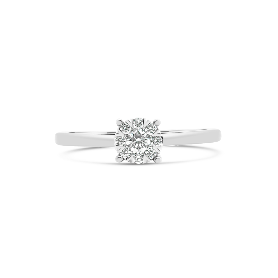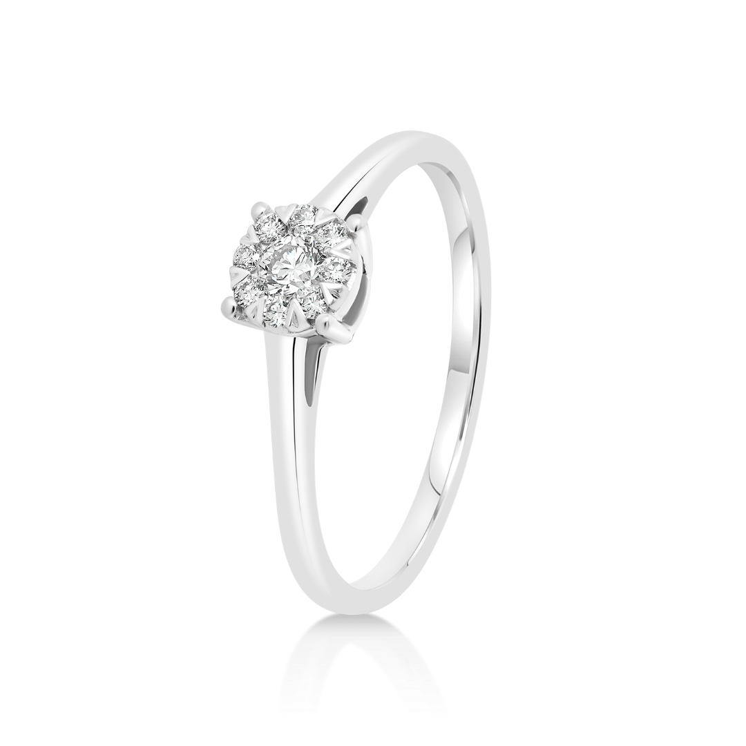 Inel de logodnă din aur alb de 14K cu 9 Diamante naturale Round Brilliant.