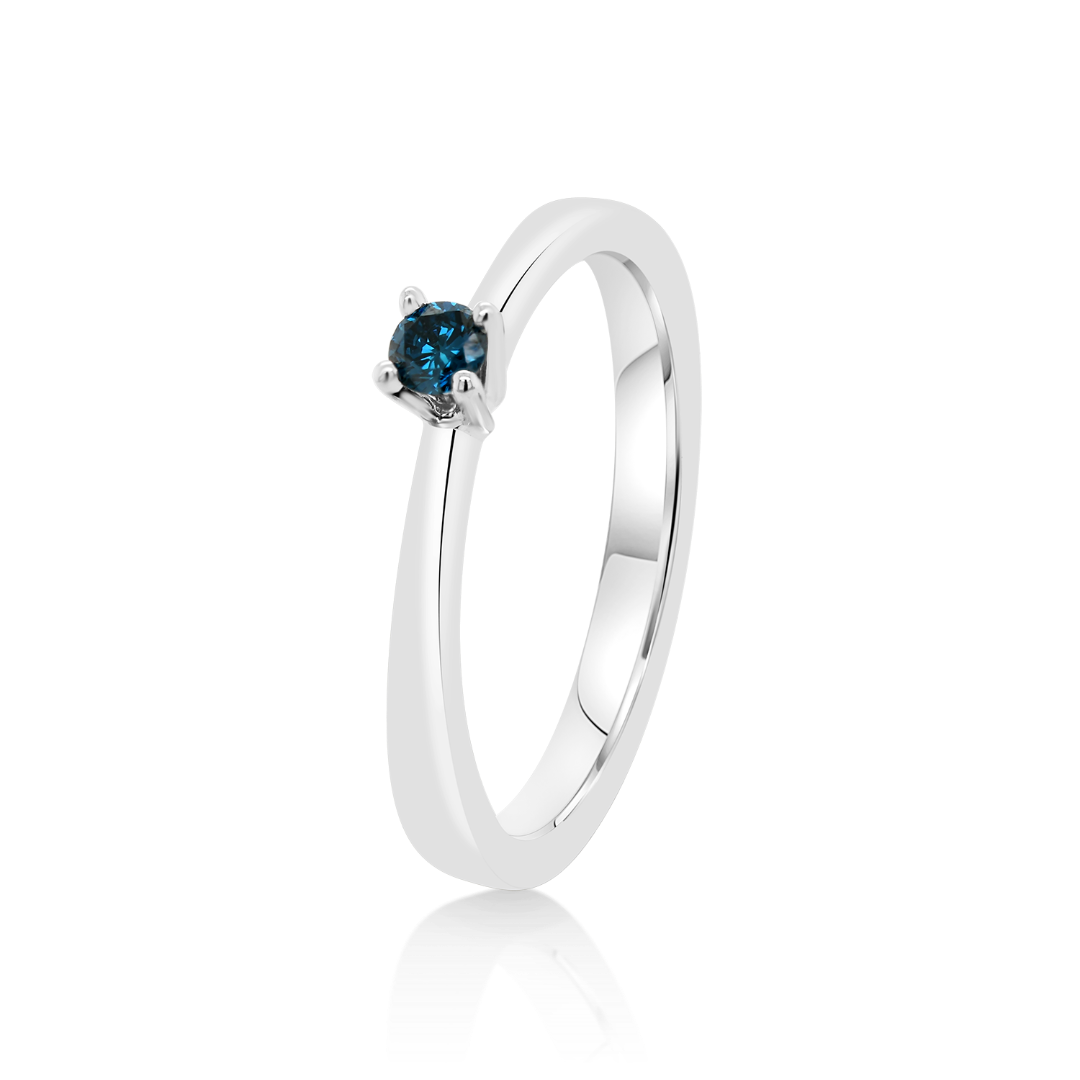 Inel din aur alb de 18K cu Diamant albastru natural