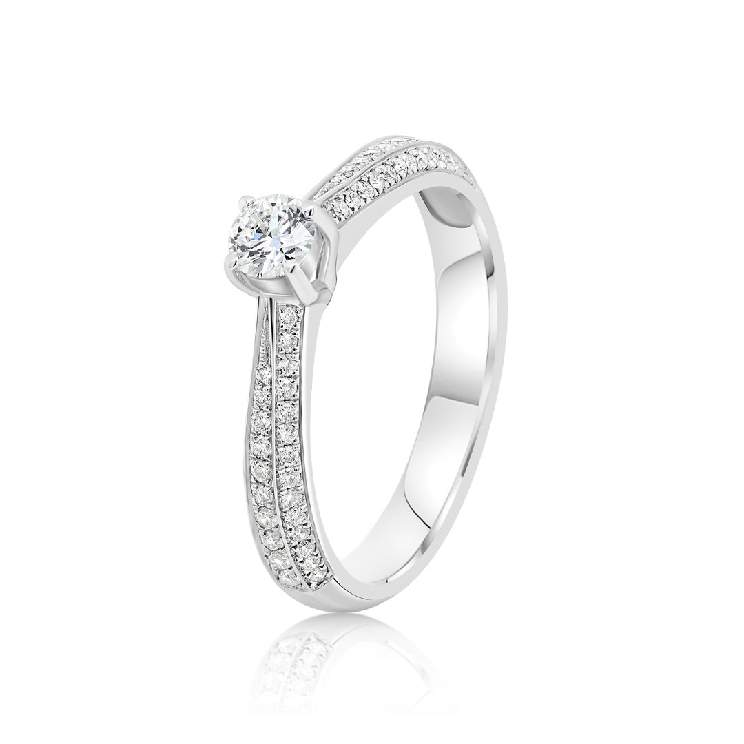 Inel de logodnă din aur alb de 18K încrustat cu Diamante naturale Round Brilliant de 0.49ct.