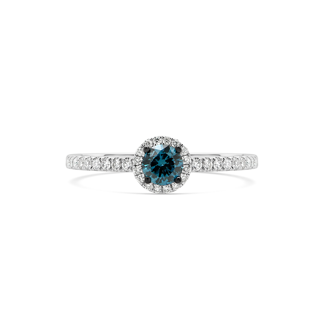 Inel din aur alb de 18K, încrustat central cu un Diamant Ice Blue de 0.30ct. și 34 de Diamante incolore de 0.20ct.