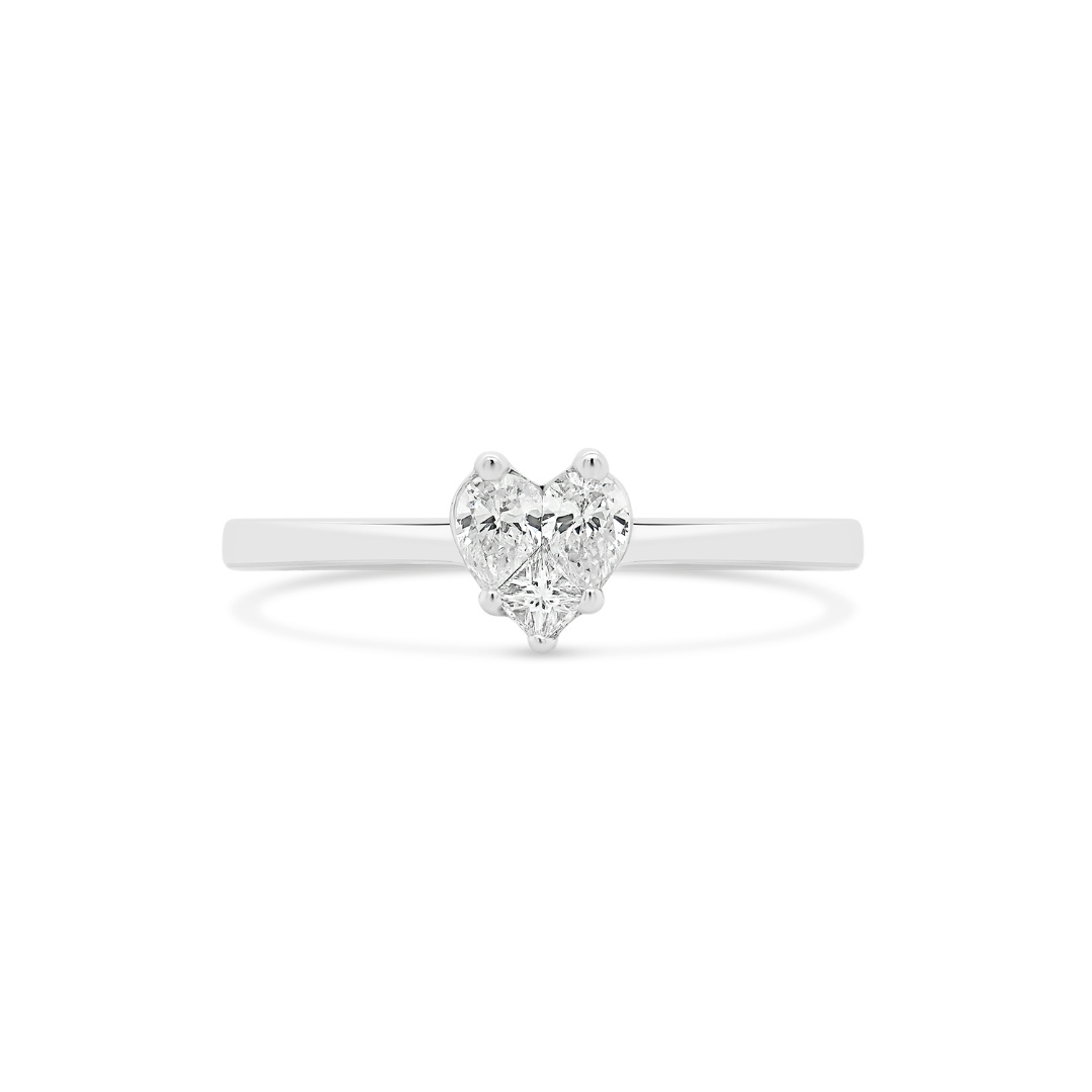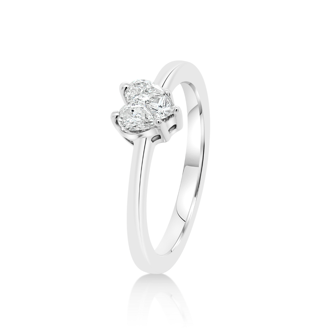 Inel din aur alb de 18K, cu un Diamant Princess de 0.06ct și două Diamante Pear de 0.21ct.
