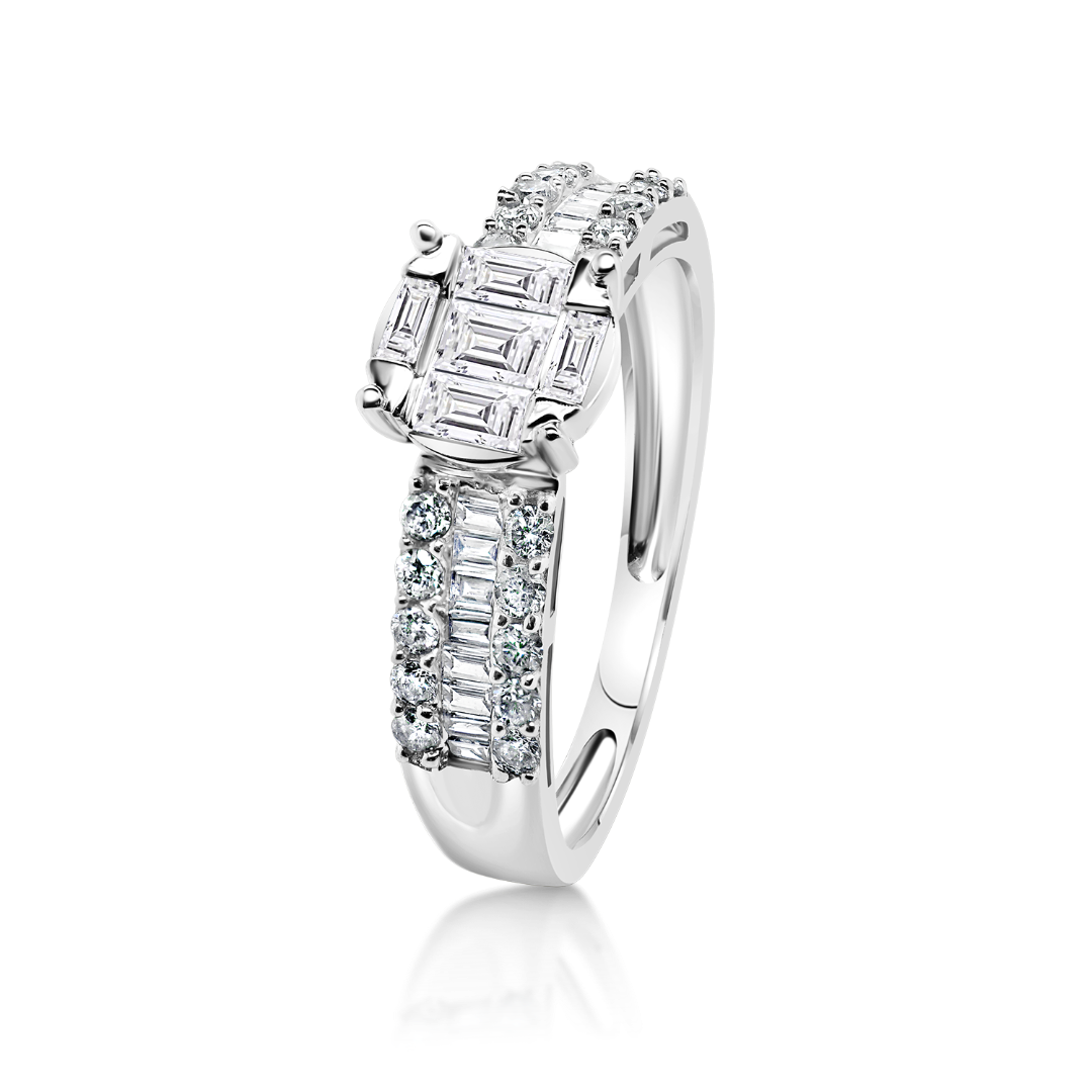 Inel din aur alb de 18K încrustat cu 20 de Diamante Round Brilliant și 22 de Diamante Baguette.