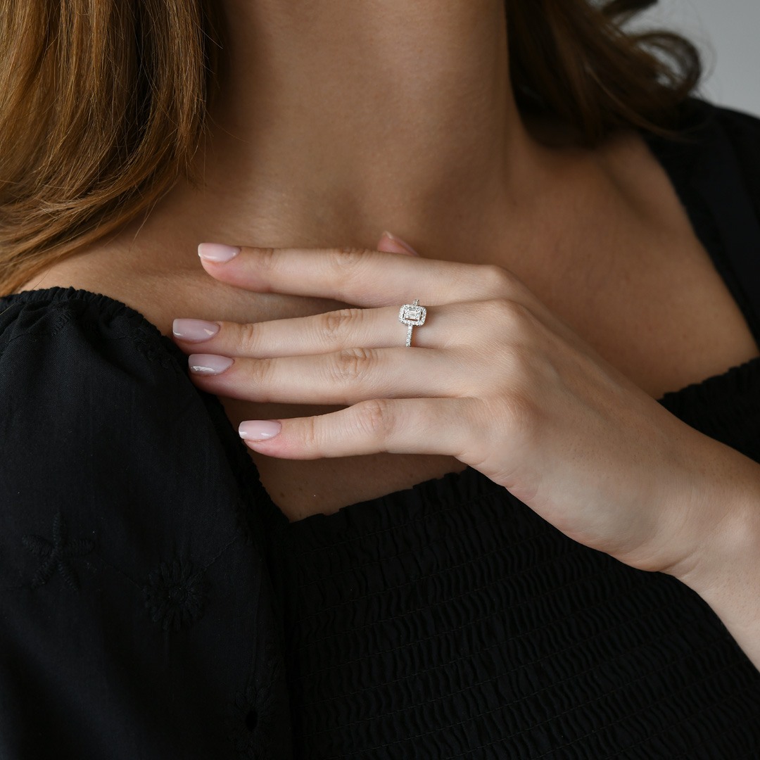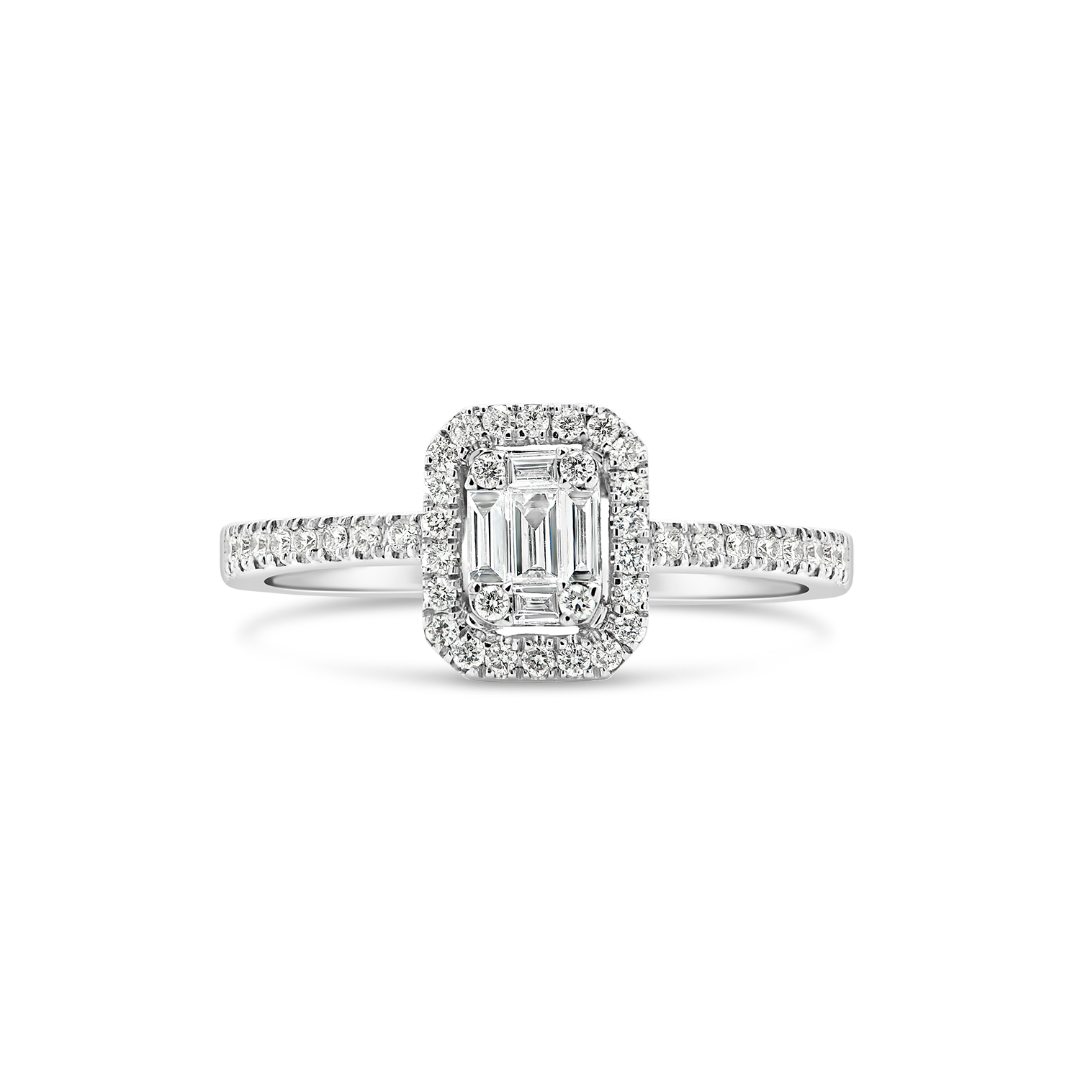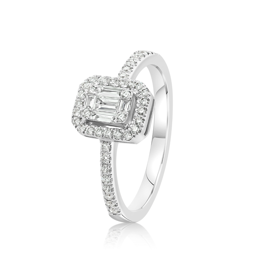 Inel din aur alb de 18K încrustat cu 5 Diamante Baguette și 42 de Diamante Round Brilliant.