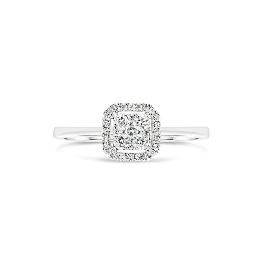 Inel de logodnă din aur alb de 18K cu 33 de Diamante naturale Round Brilliant.