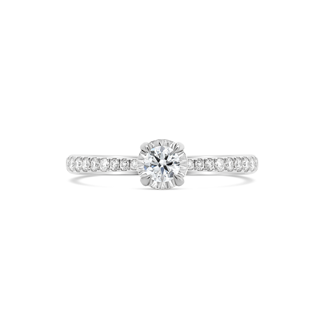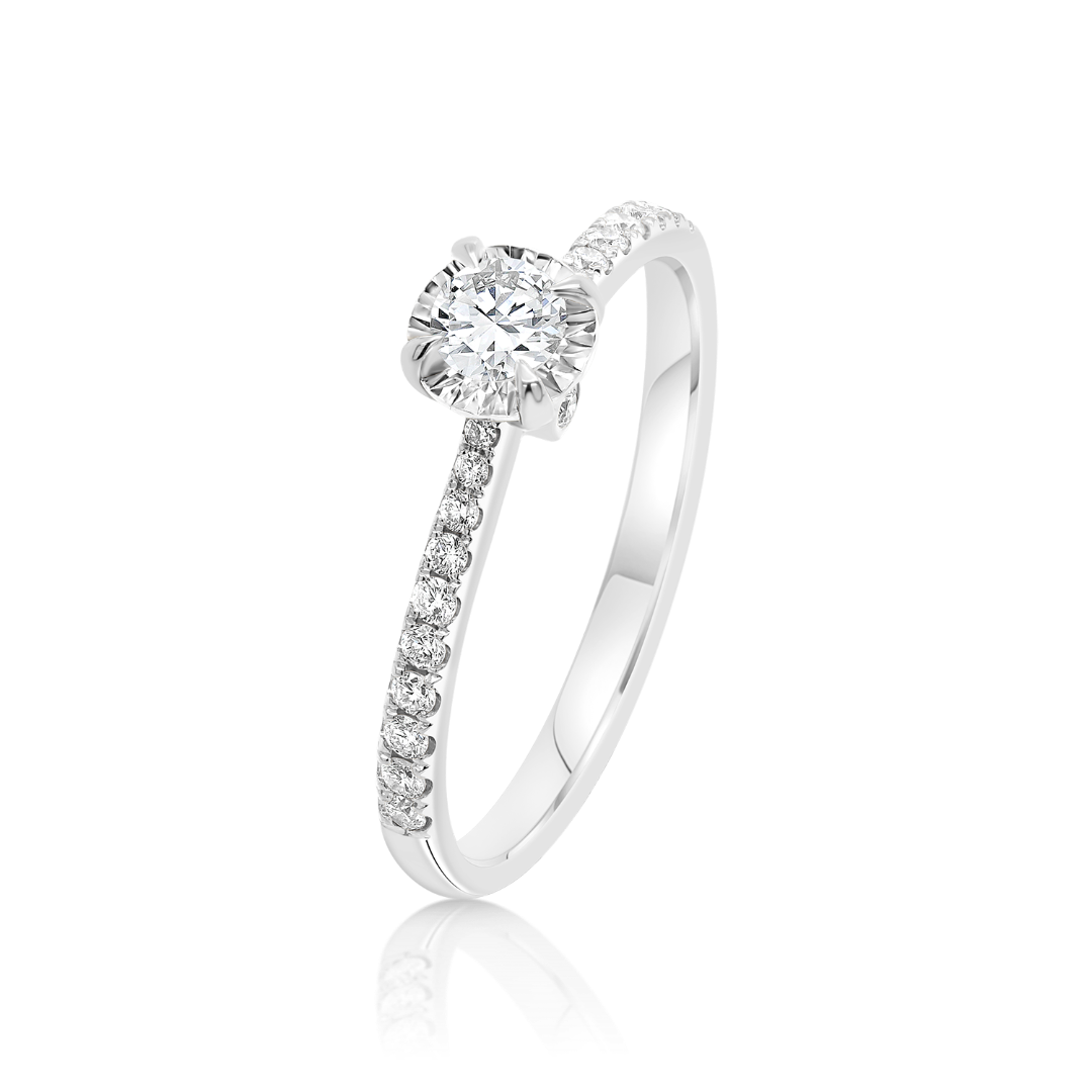Inel de logodnă din aur alb de 18K cu 23 de Diamante naturale Round Brilliant.