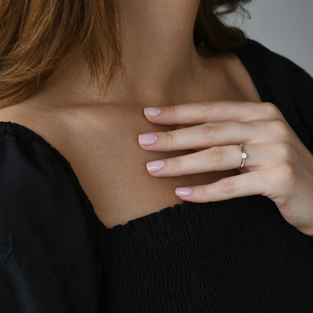 Inel de logodnă din aur alb de 18K cu un Diamant natural Round Brilliant.