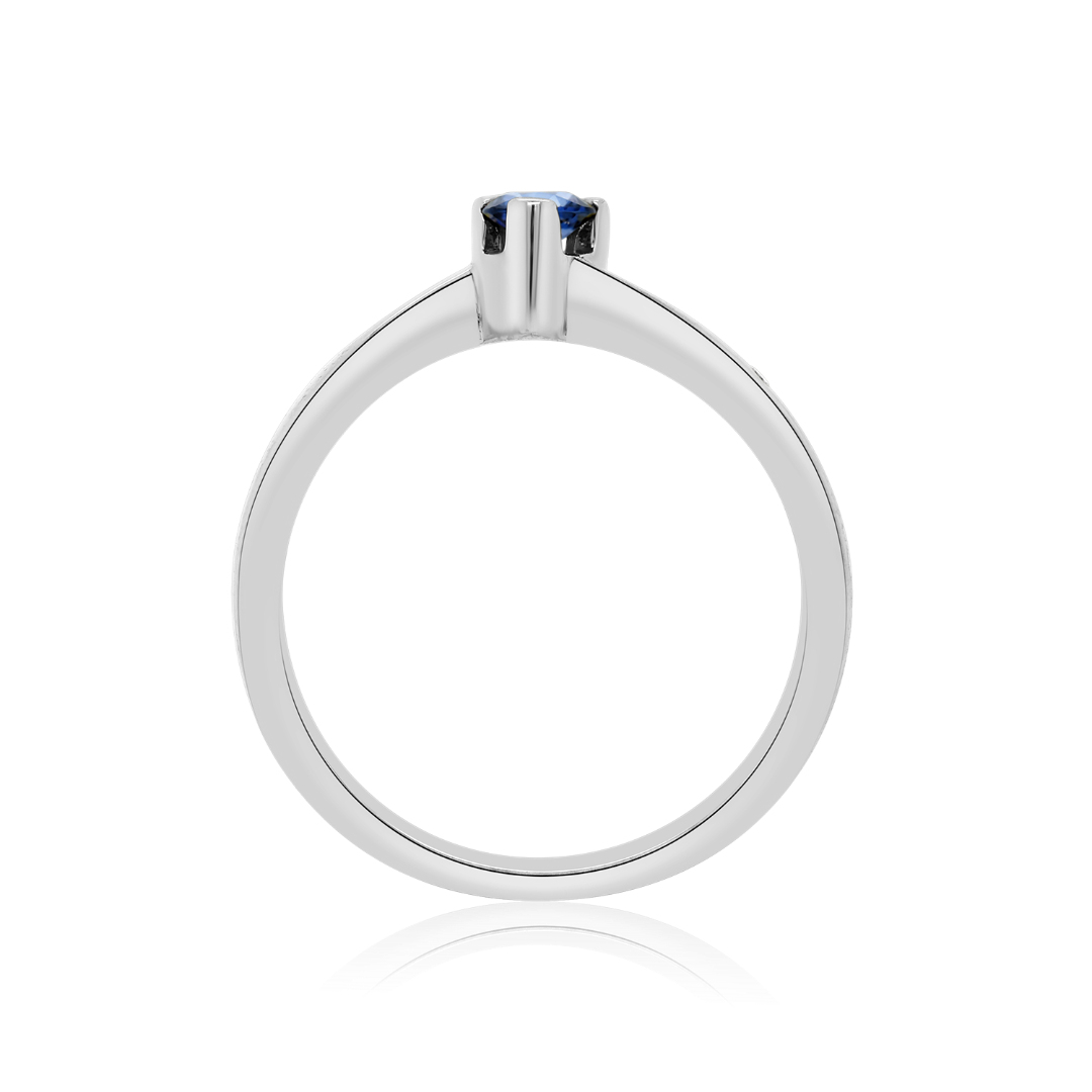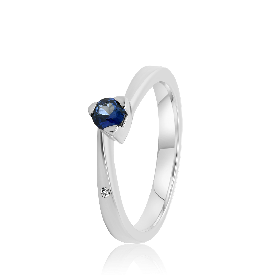 Inel din aur alb de 18K, încrustat cu un Diamant de 0.05ct. și Safir 0.23ct.