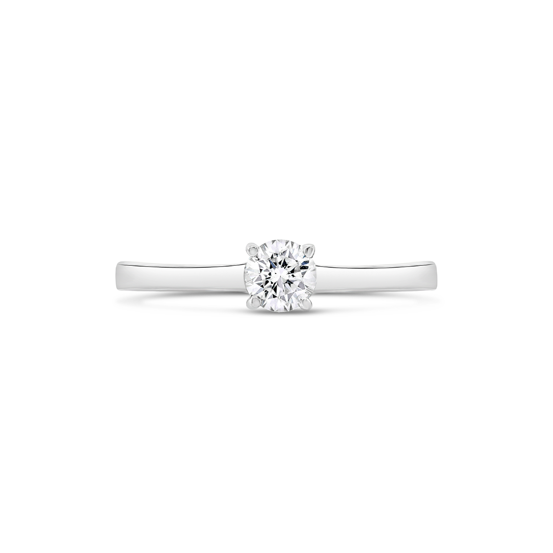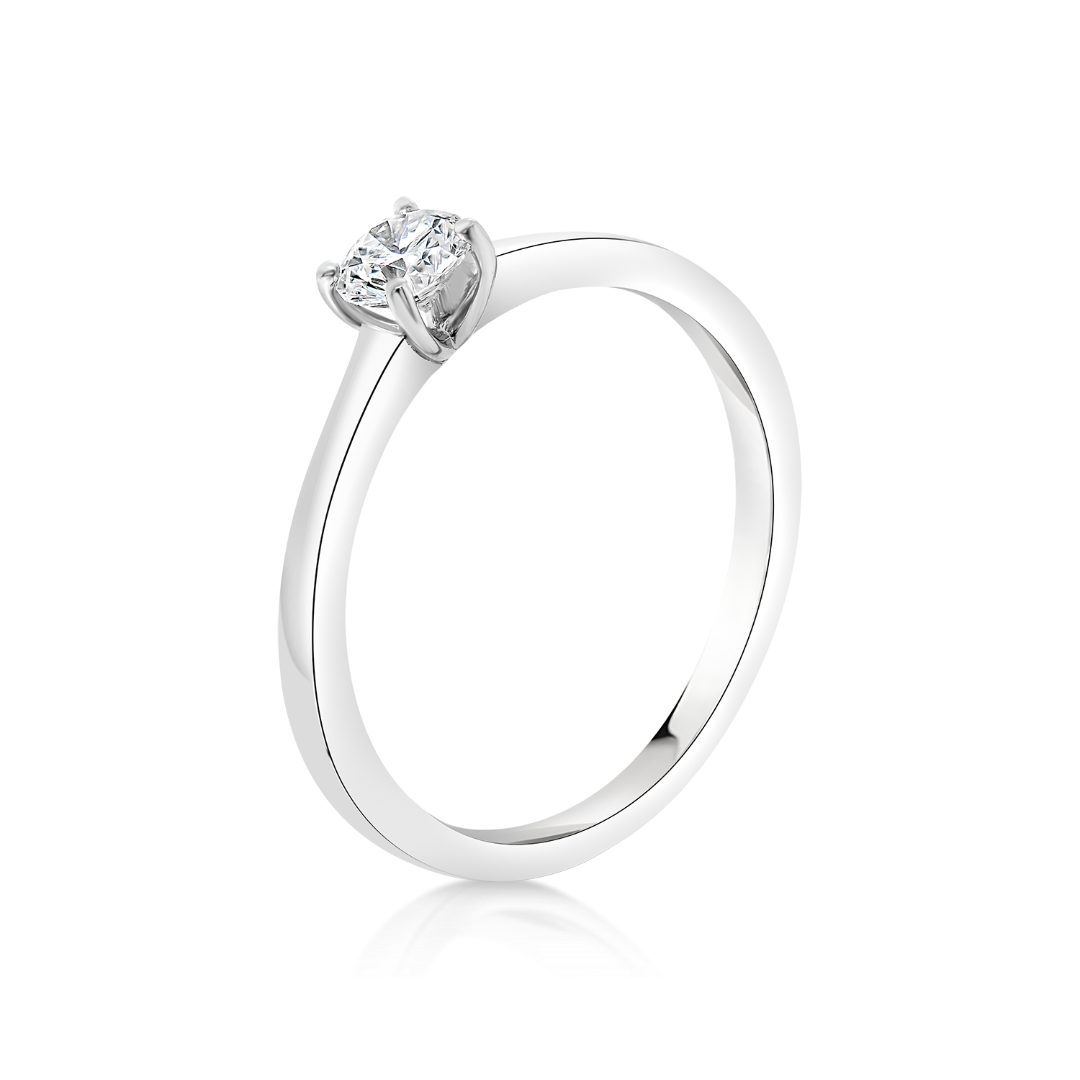 Inel de logodnă din aur alb de 18K încrustat cu un Diamant natural Round Brilliant.
