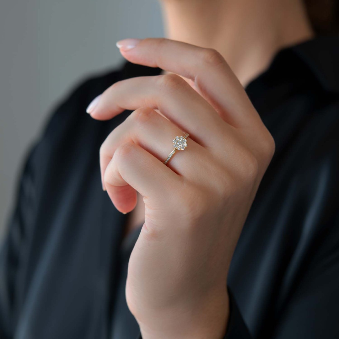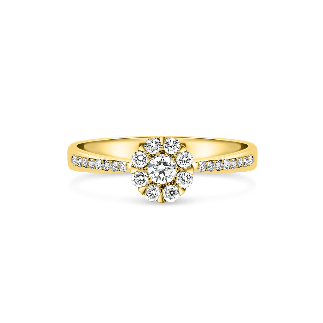 Inel din aur galben de 18K, încrustat cu 25 de Diamante naturale Round Brilliant cu o greutate totală de 0.305ct.