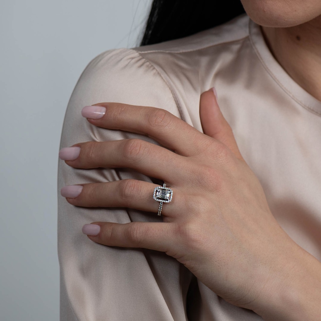 Inel din aur alb de 14K, încrustat cu 54 de Diamante cu o greutate totală de 0.767ct.