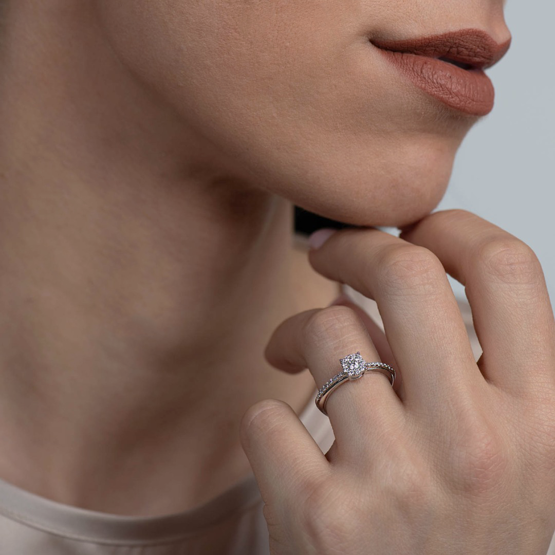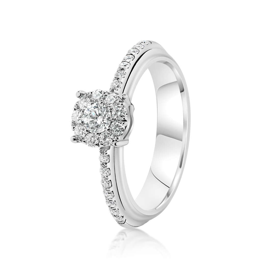 Inel de logodnă din aur alb de 14K, încrustat cu 24 de Diamante naturale cu o greutate totală de 0.363ct.