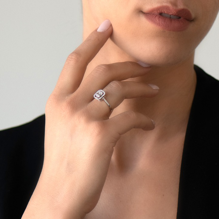 Inel din aur alb de 18K cu Diamante naturale