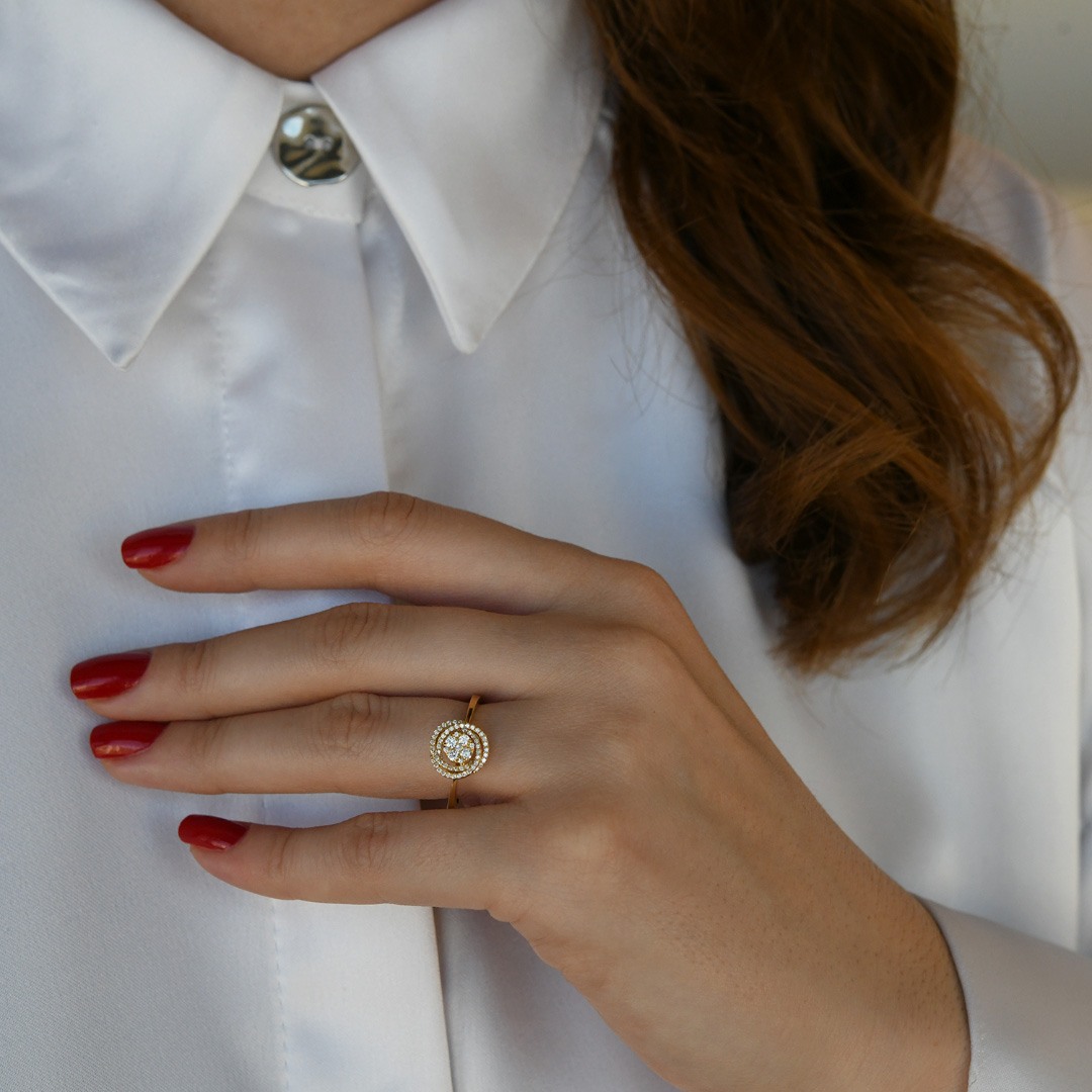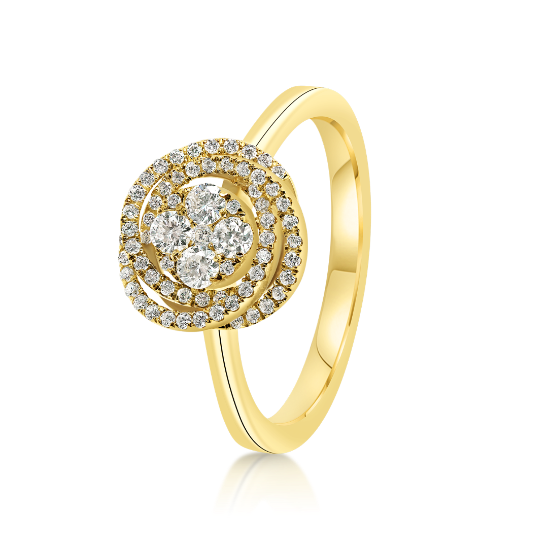 Inel din aur galben de 18K încrustat cu 69 de Diamante naturale Round Brilliant de 0.35ct.