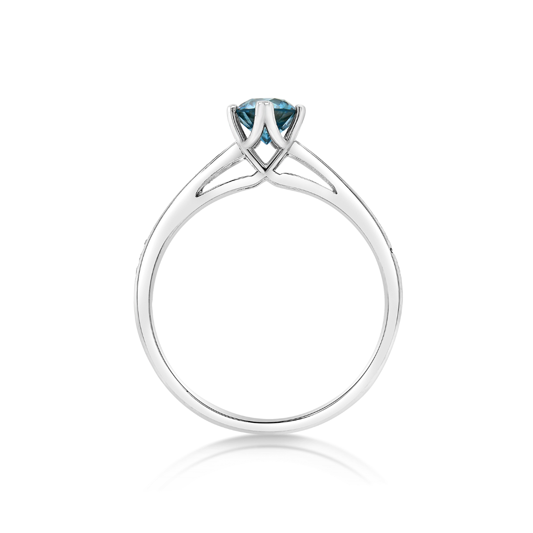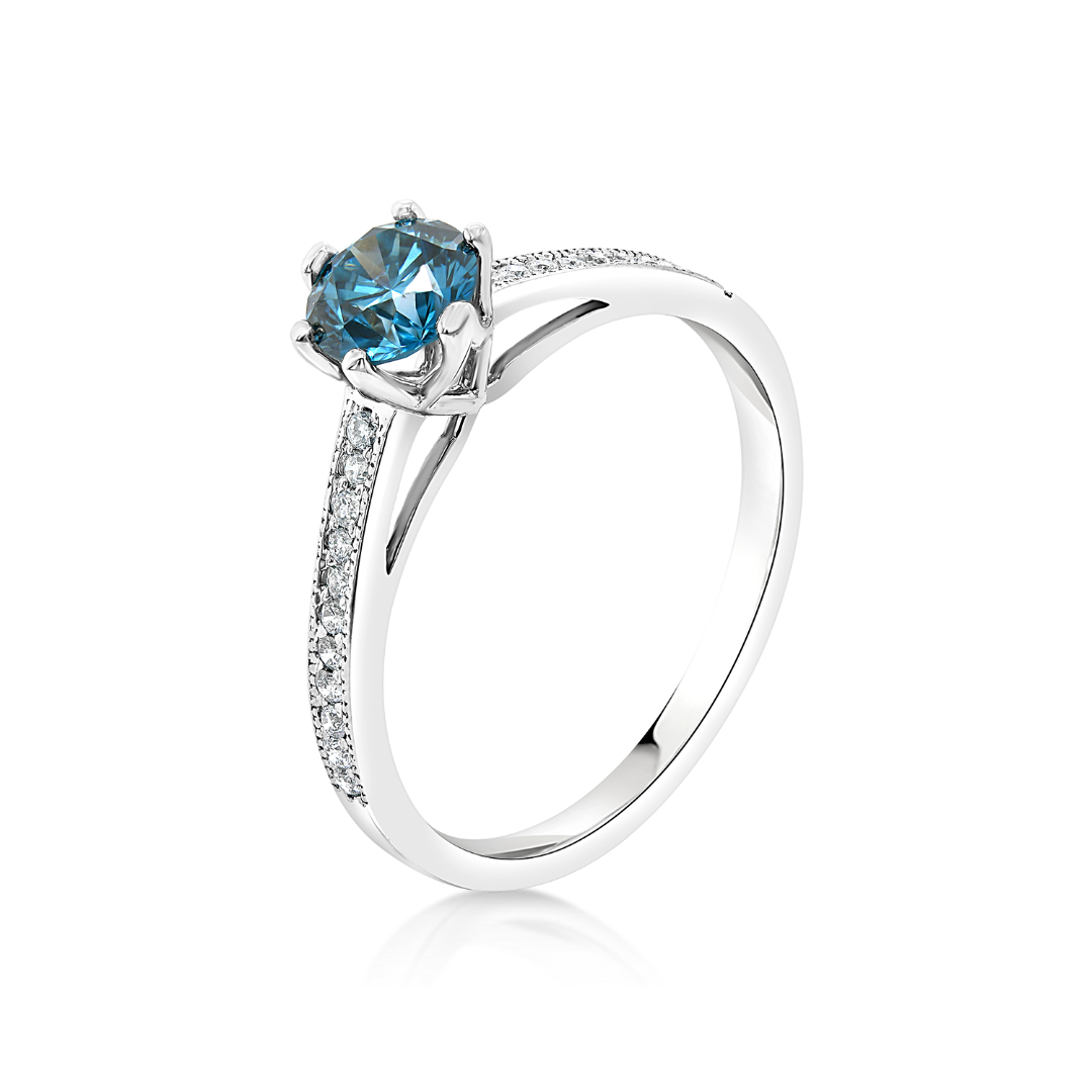 Inel de logodnă din aur alb de 18K cu un Diamant Ice Blue de 0.50ct și 22 de Diamante incolore de 0.11ct.