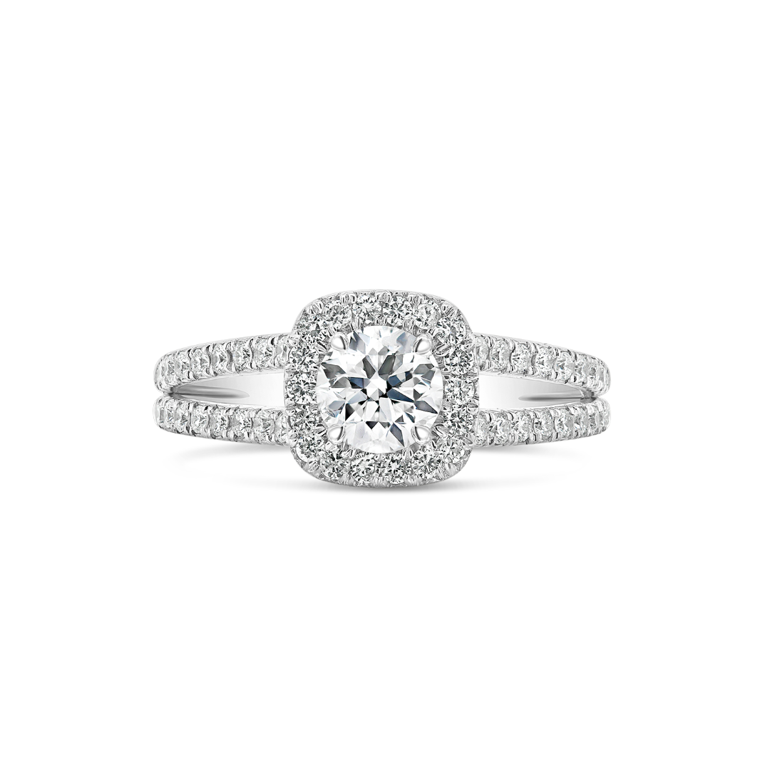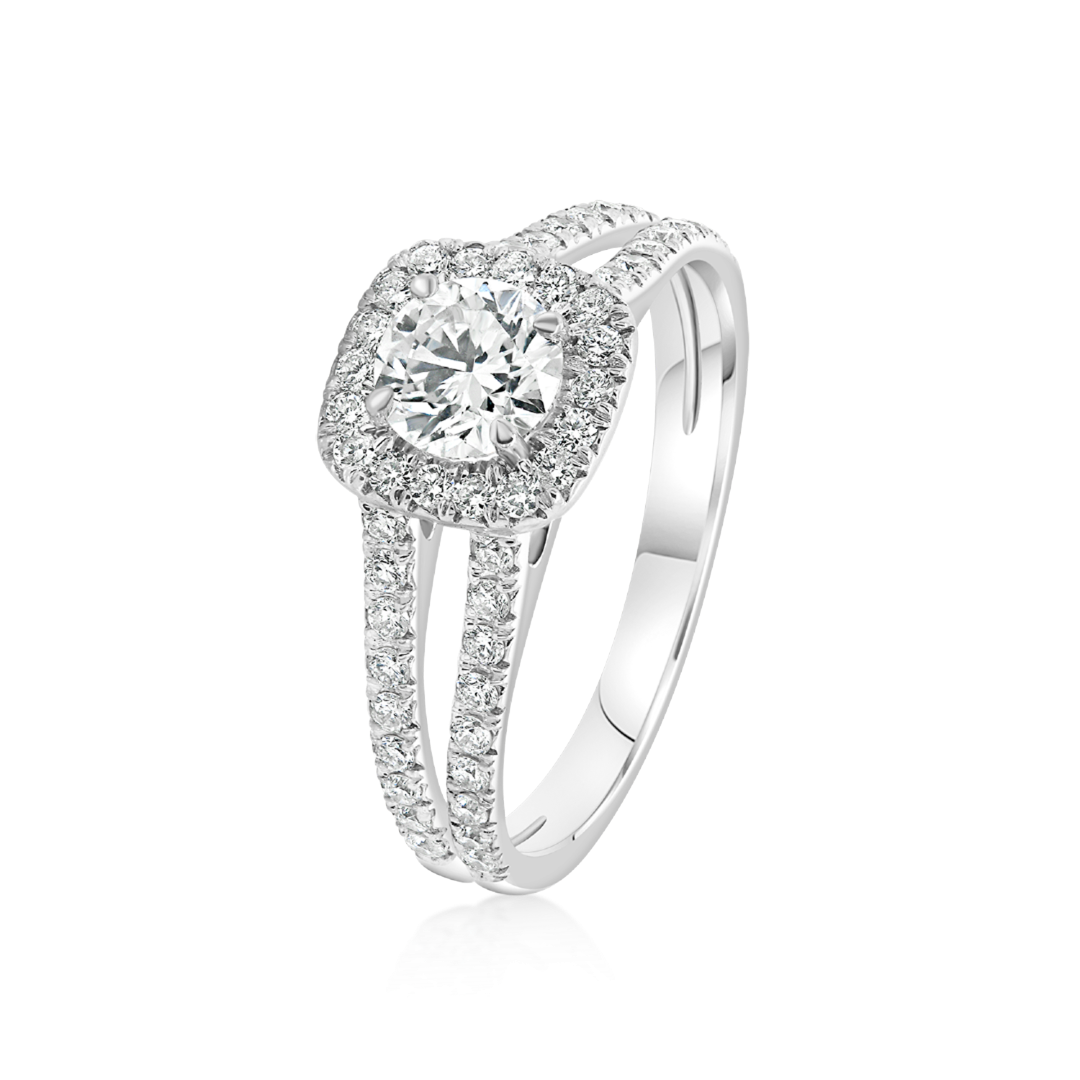 Inel din aur alb de 18K cu un Diamant Round Brilliant certificat la Institutul Gemologic GIA cu numărul 2368320382 și 54 de Diamante de 0.43ct.
