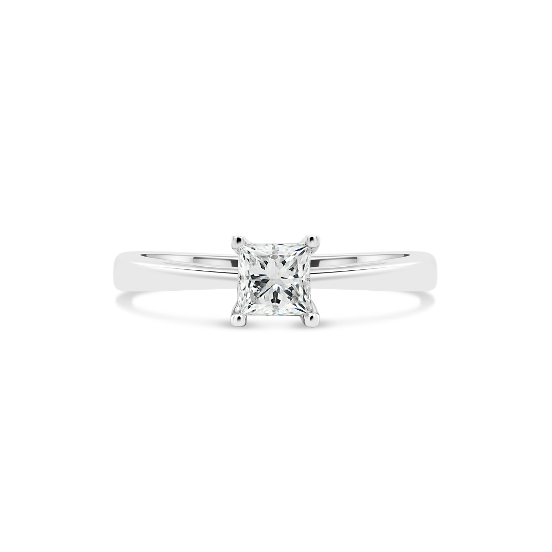 Inel de logodnă din aur alb de 18K cu un Diamant natural Princess de 1.01ct. certificat la Institutul Gemologic GIA cu numărul 7281476170.