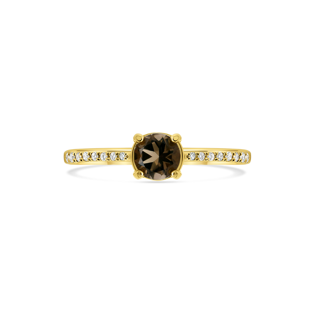 Inel din aur galben de 18K cu Diamante naturale și Smoky Quartz