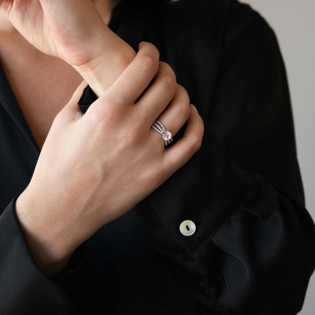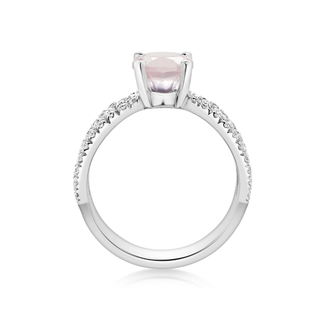 Inel din aur alb de 18K cu Pink Quartz și Diamante naturale
