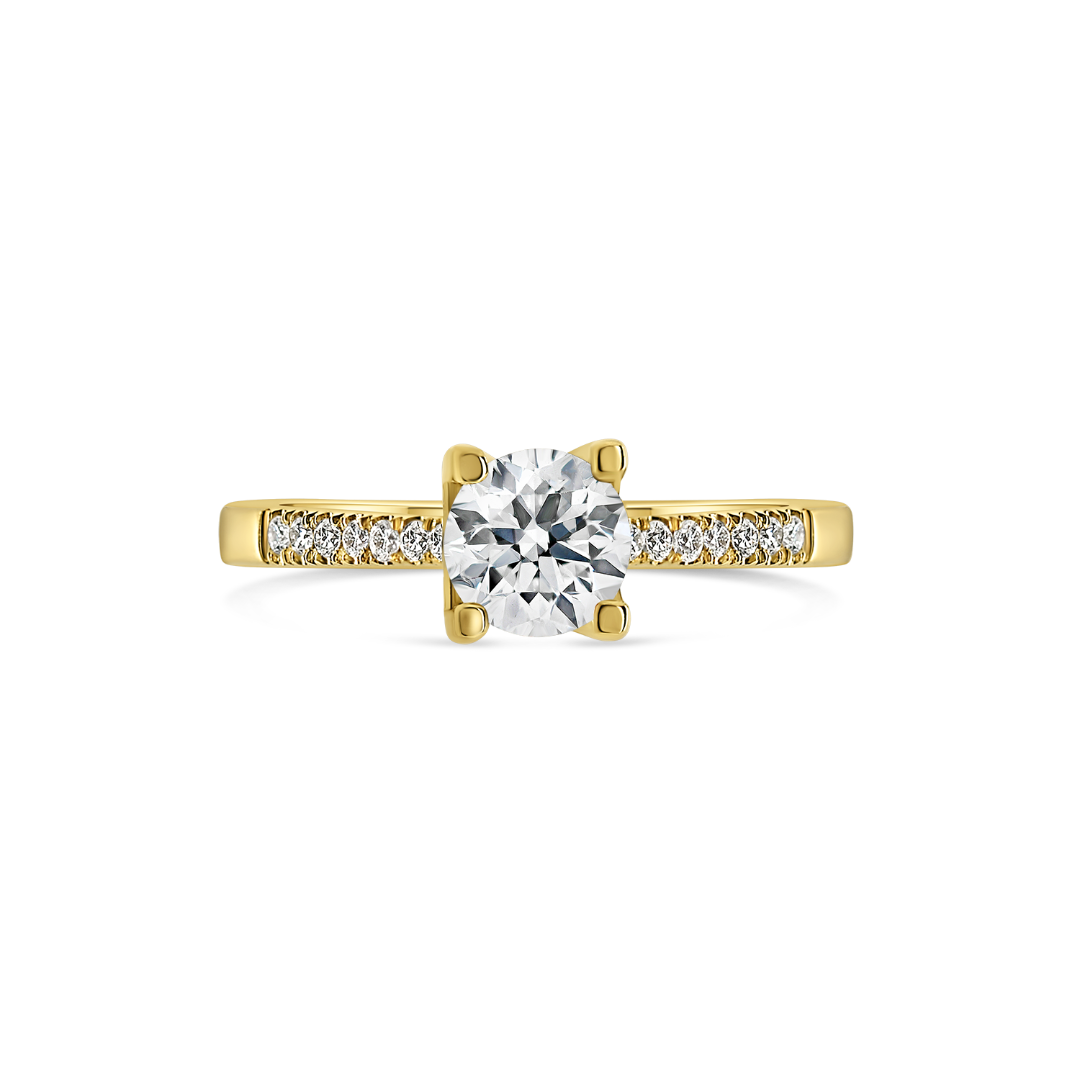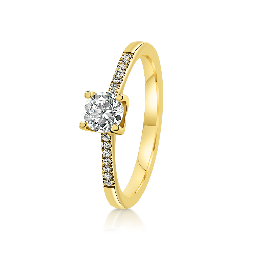 Inel din aur galben de 18K cu un Diamant Round Brilliant de 0.40ct certificat la Institutul Gemologic GIA cu numărul 6392823416 și 14 Diamante de 0.07ct.