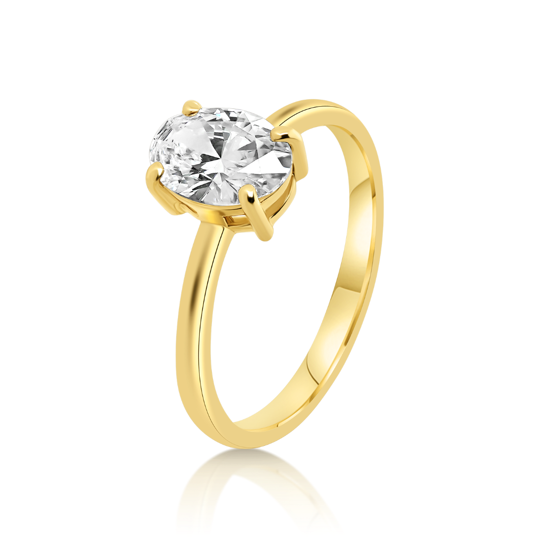 Inel de logodnă din aur galben de 14K cu Diamant creat în laborator.