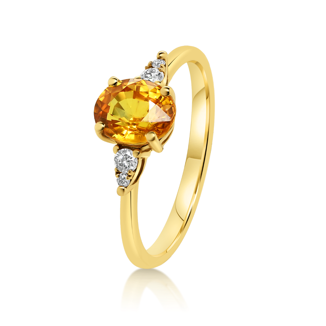 Inel din aur galben de 18K, cu Diamante și Safir Orange