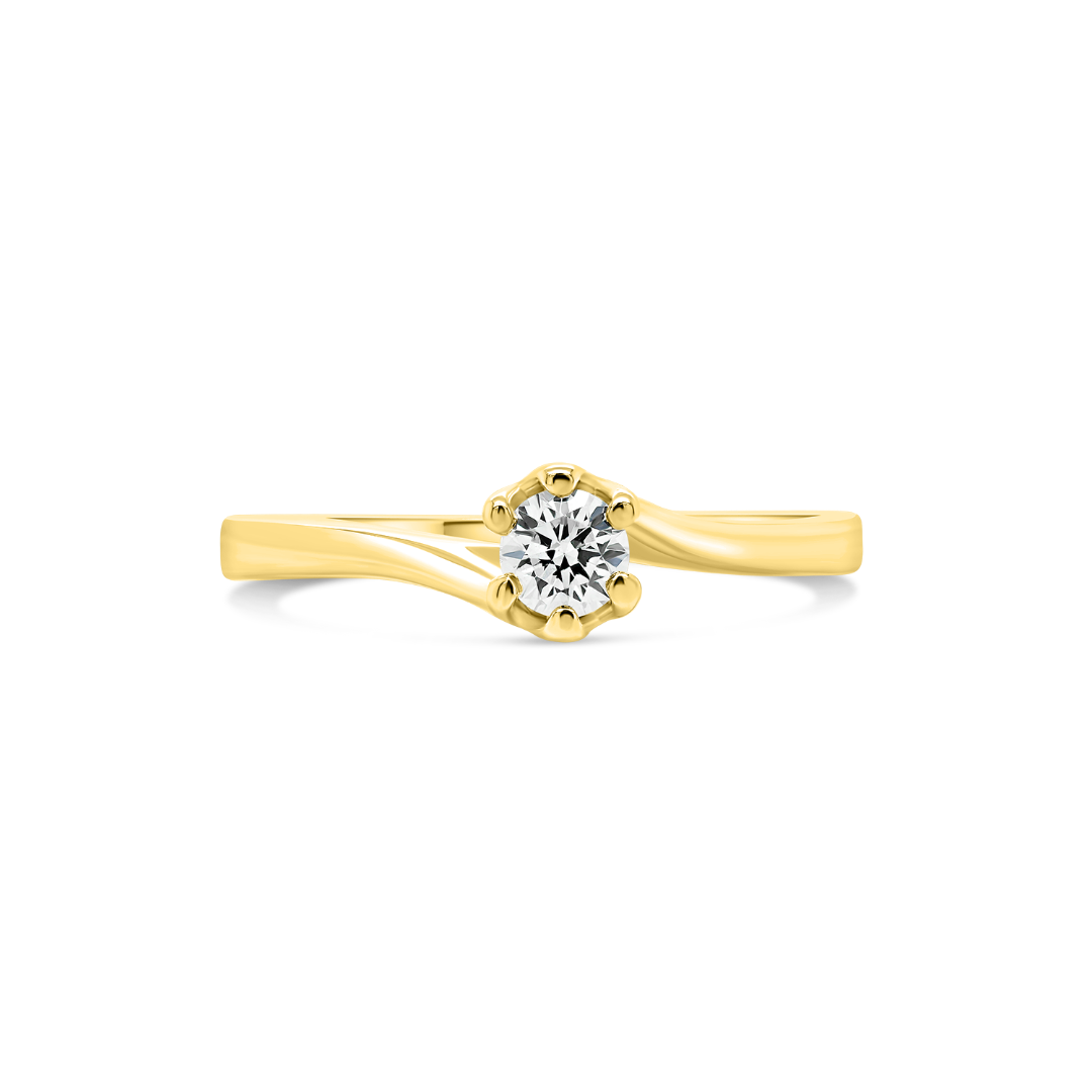 Inel de logodnă din aur galben de 18K cu un Diamant Round Brilliant natural.
