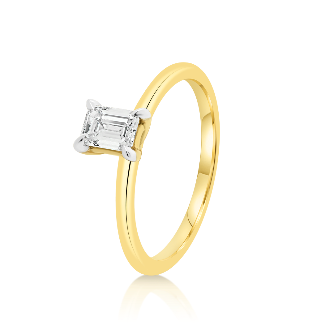 Inel din aur galben de 18K cu Diamant Emerald cut natural.