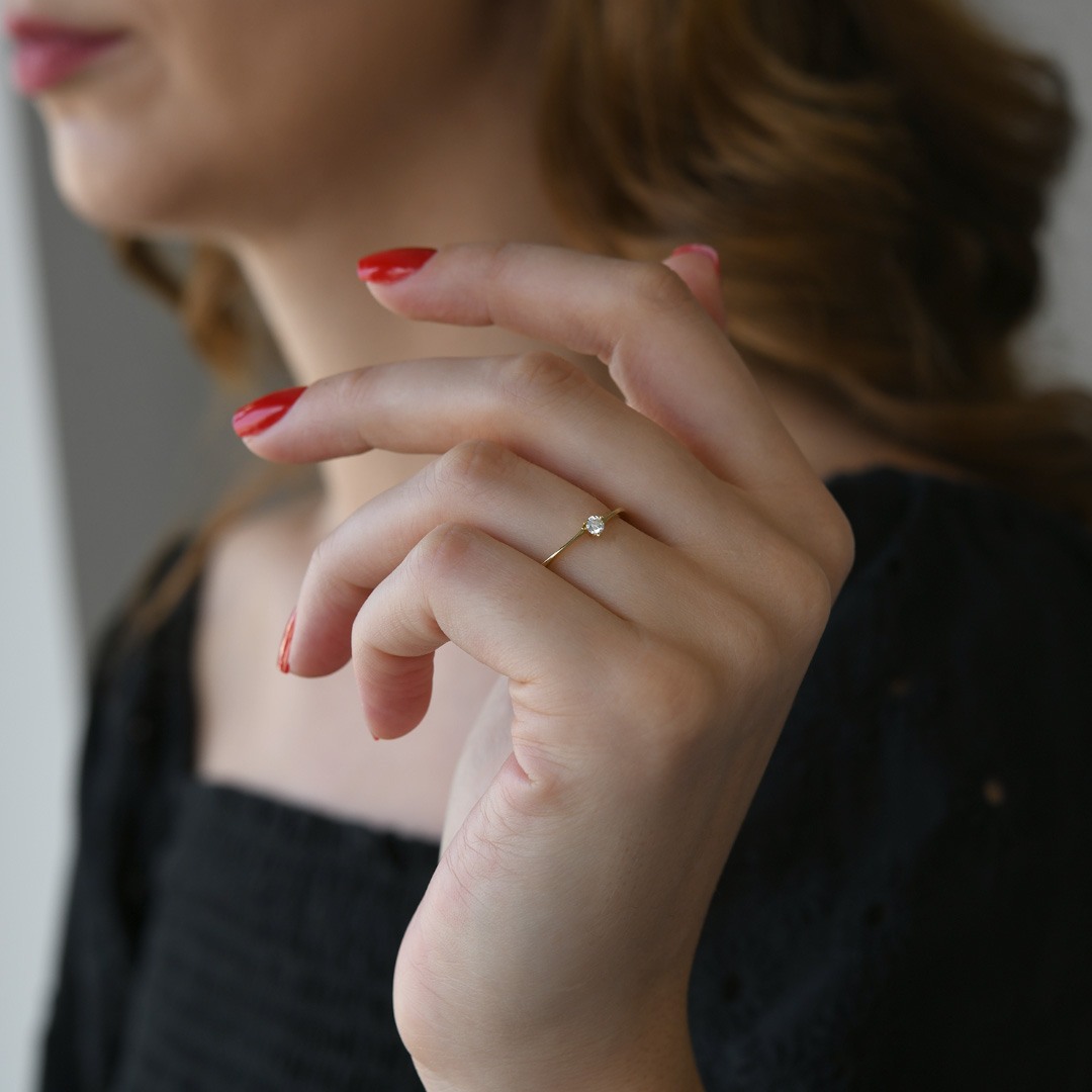 Inel de logodnă din aur galben de 18K cu un Diamant natural Round Brilliant.