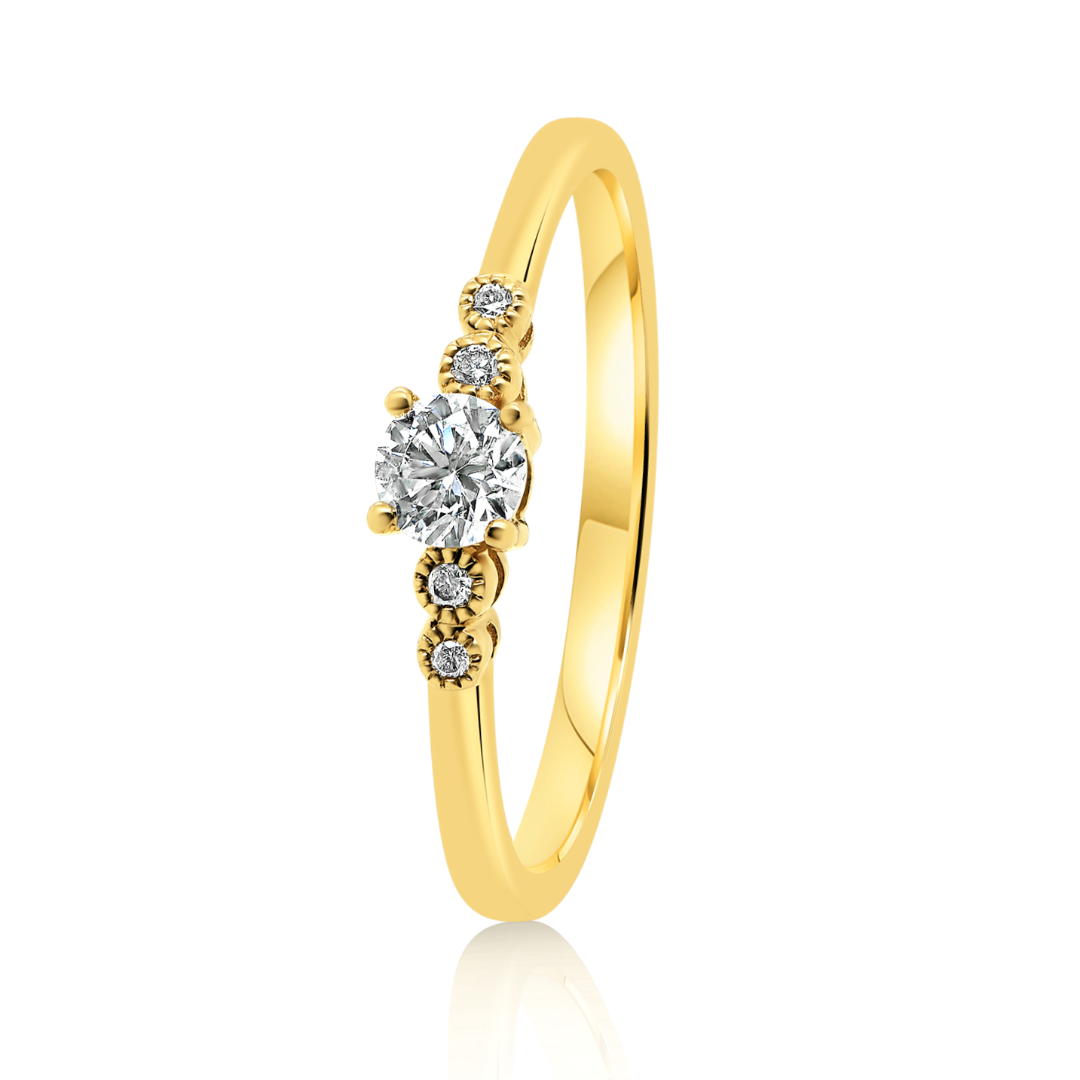 Inel de logodnă din aur galben de 18K încrustat cu 5 Diamante Round Brilliant.