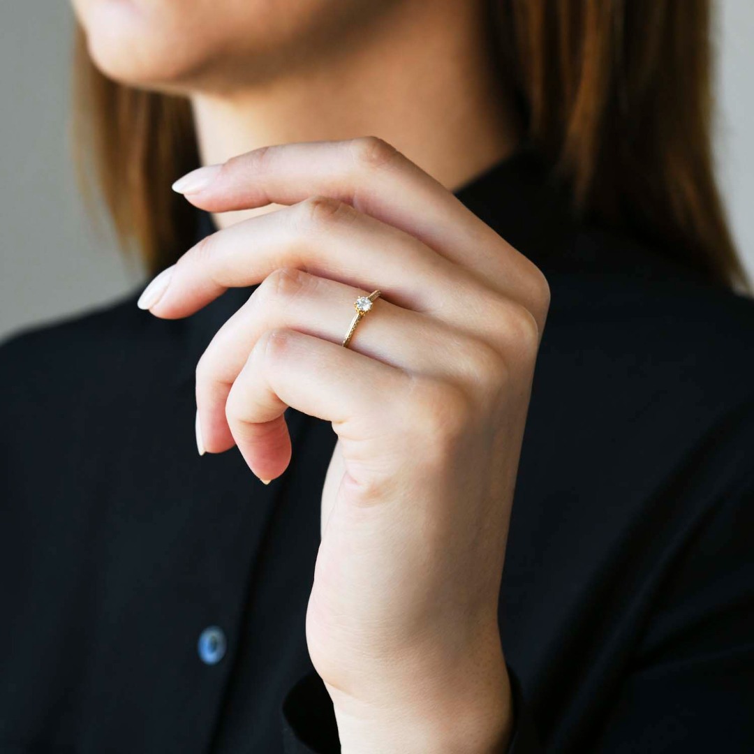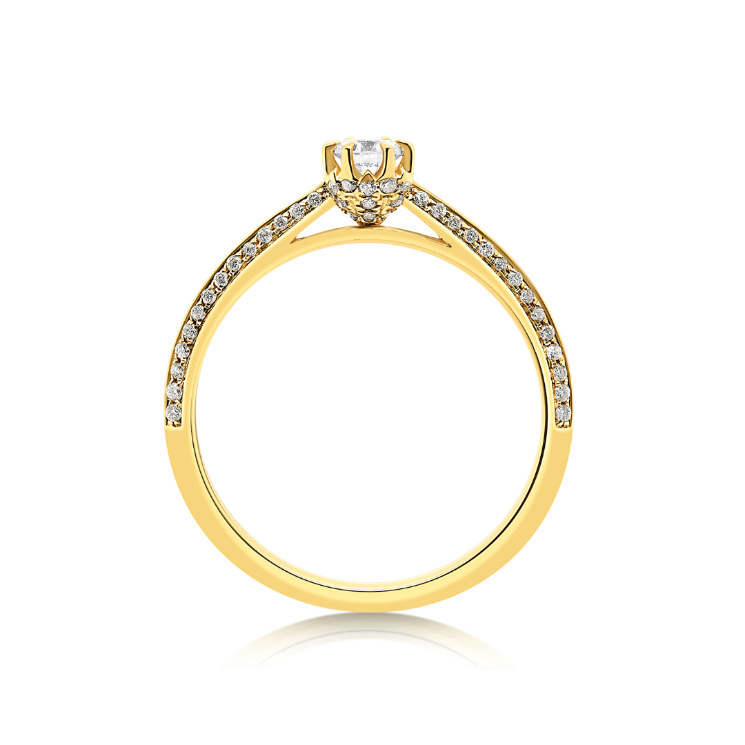 Inel de logodnă din aur galben de 18K încrustat cu Diamante naturale Round Brilliant.