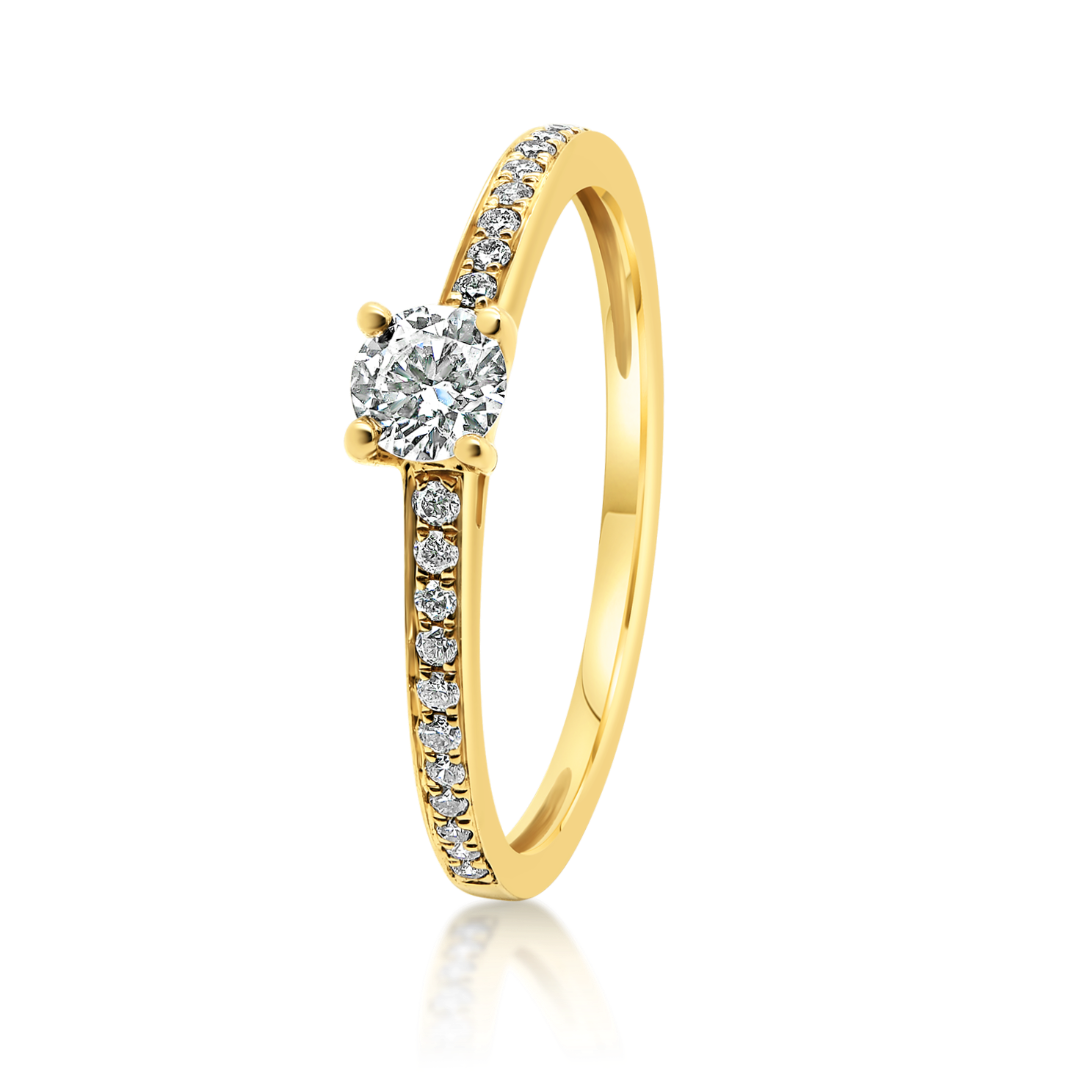 Inel de logodnă din aur galben de 18K, încrustat cu 23 de Diamante Round Brilliant cu o greutate totală de 0.31ct.