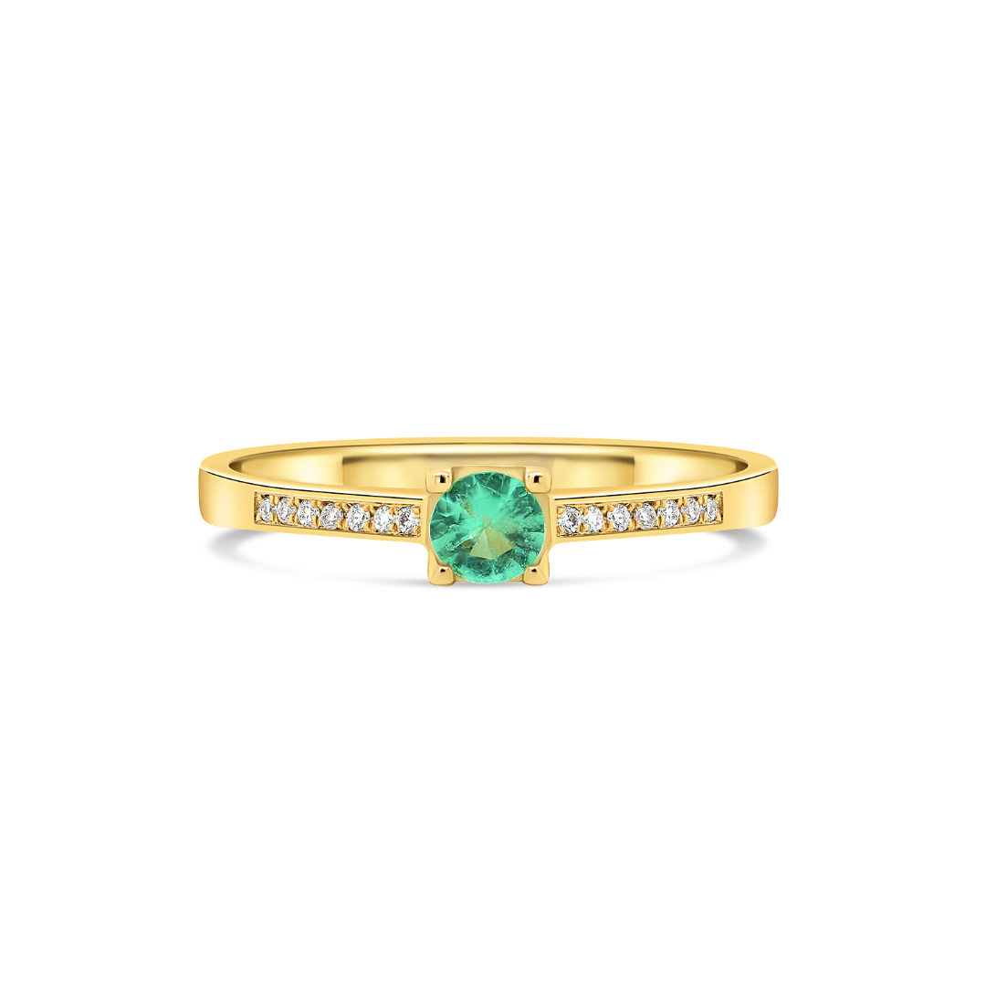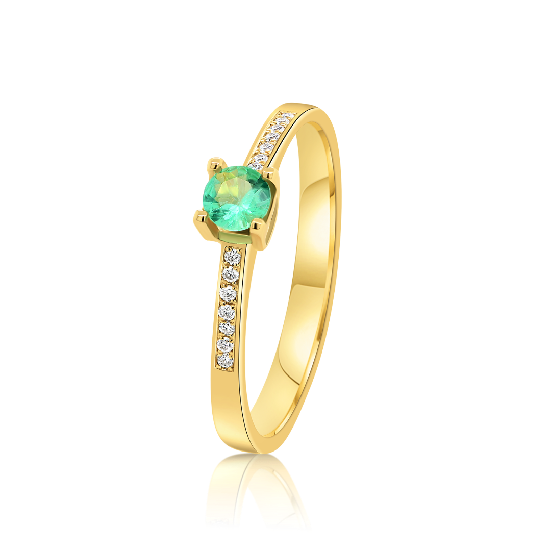 Inel din aur galben de 18K, încrustat cu 14 Diamante de 0.04ct și un Smarald de 0.14ct.