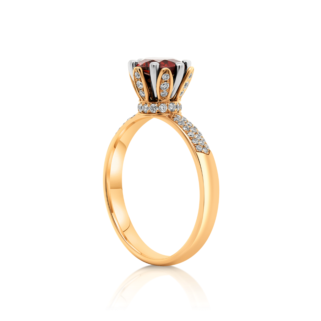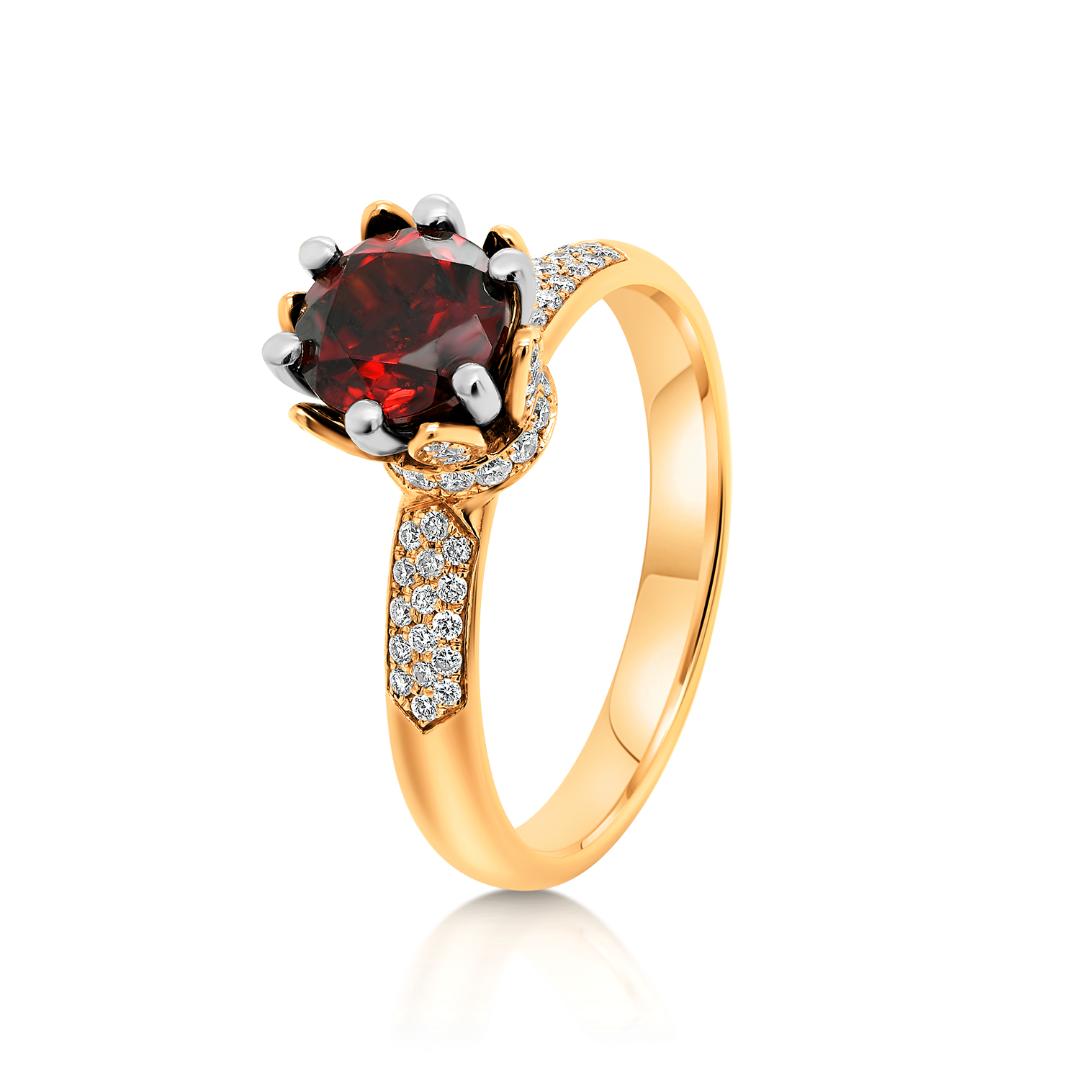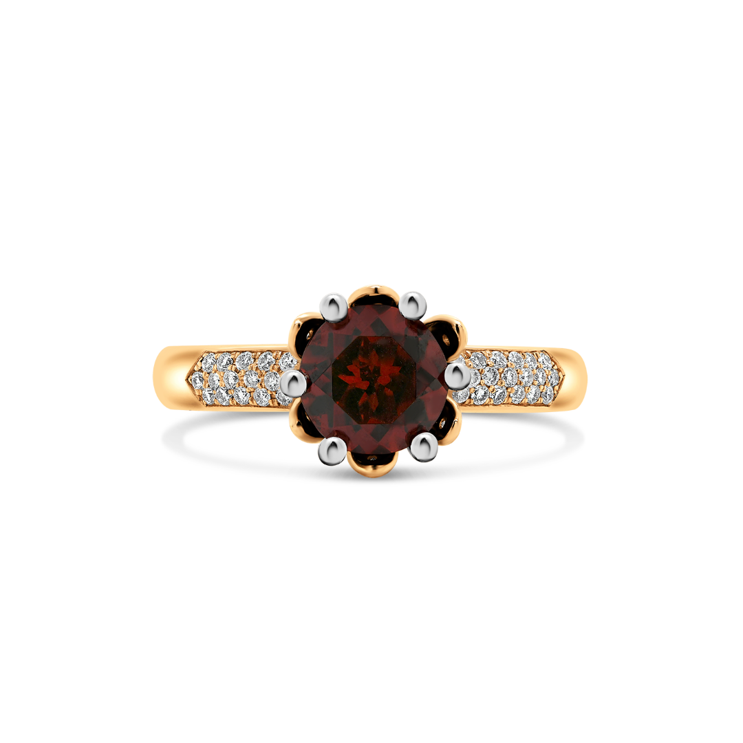 Inel din aur roz de 18K, cu Diamante și piatră Granat