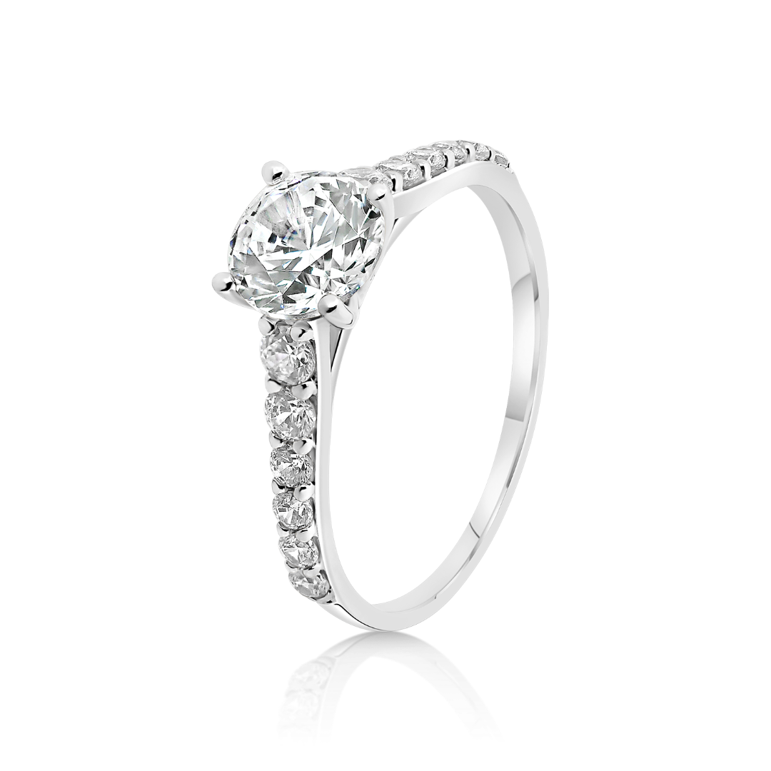 Inel de logodnă din aur alb de 14K cu zirconia incolore.