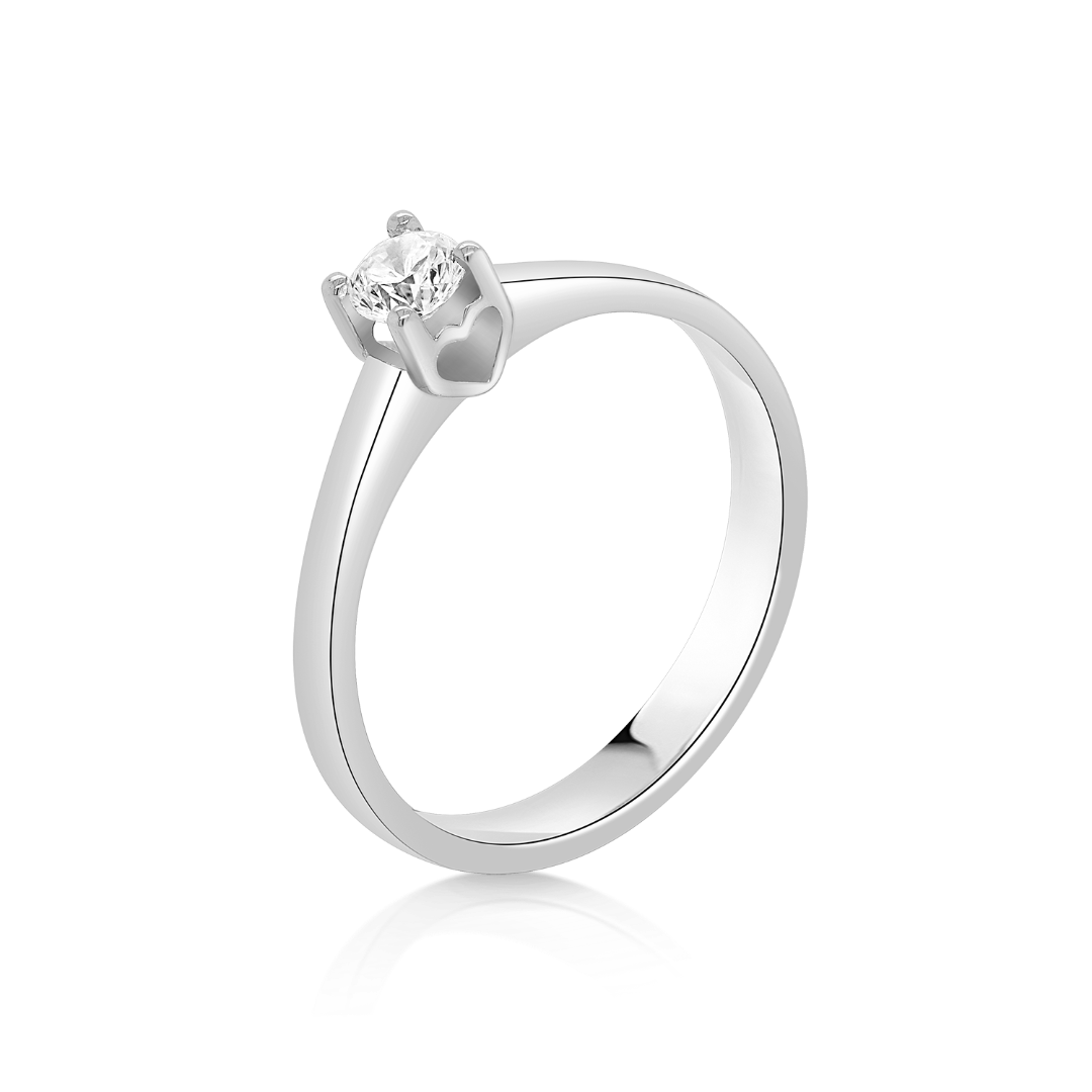 Inel de logodnă din aur alb de 14K cu piatră cubic zirconia.