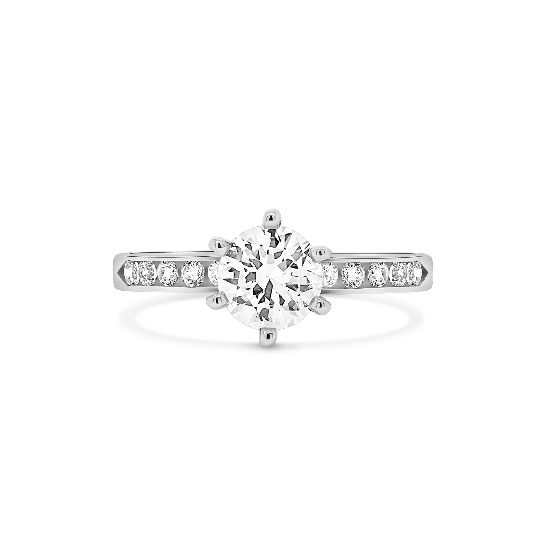 Inel de logodnă din aur alb de 14K cu pietre cubic zirconia.