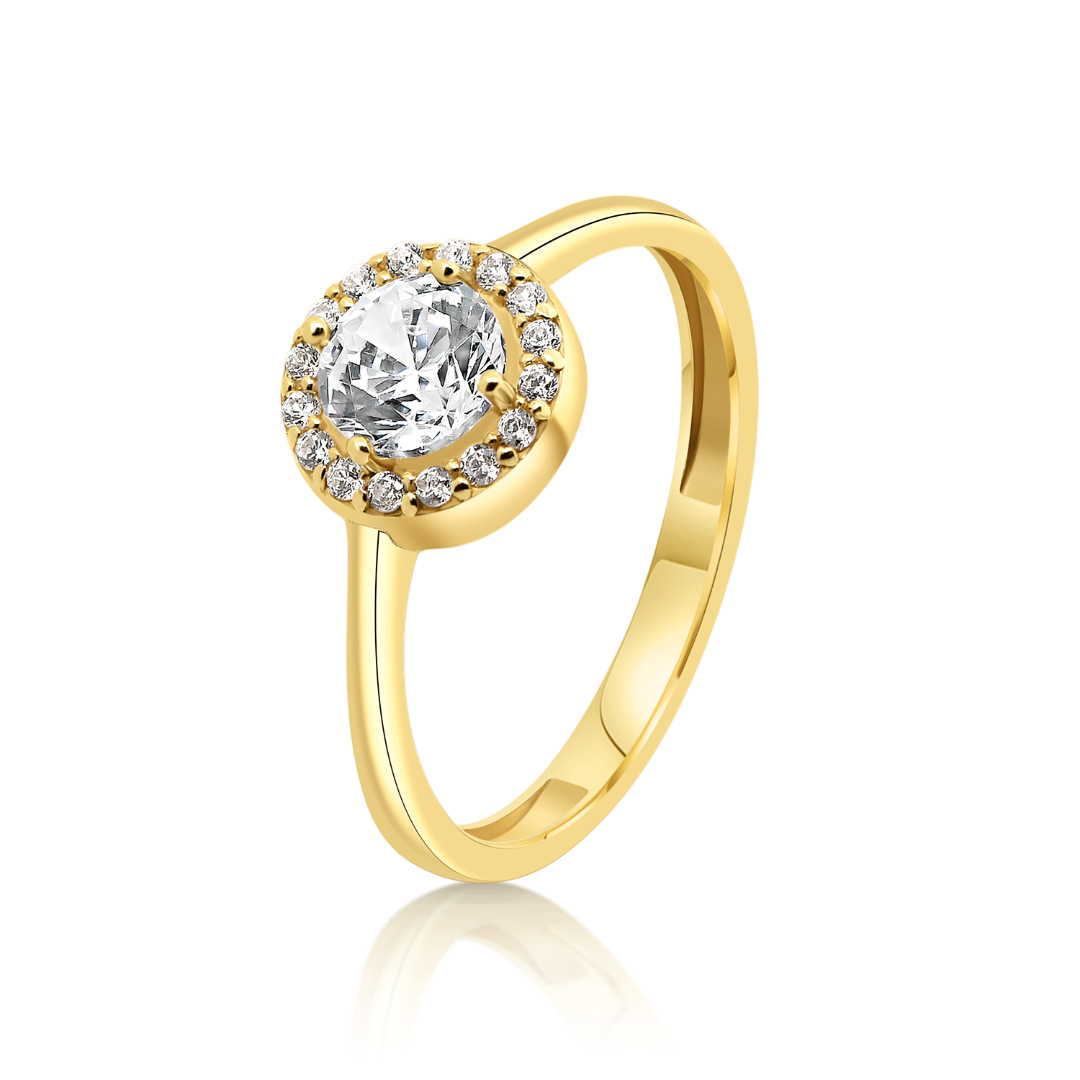 Inel de logodnă din aur galben de 14K cu pietre cubic zirconia.