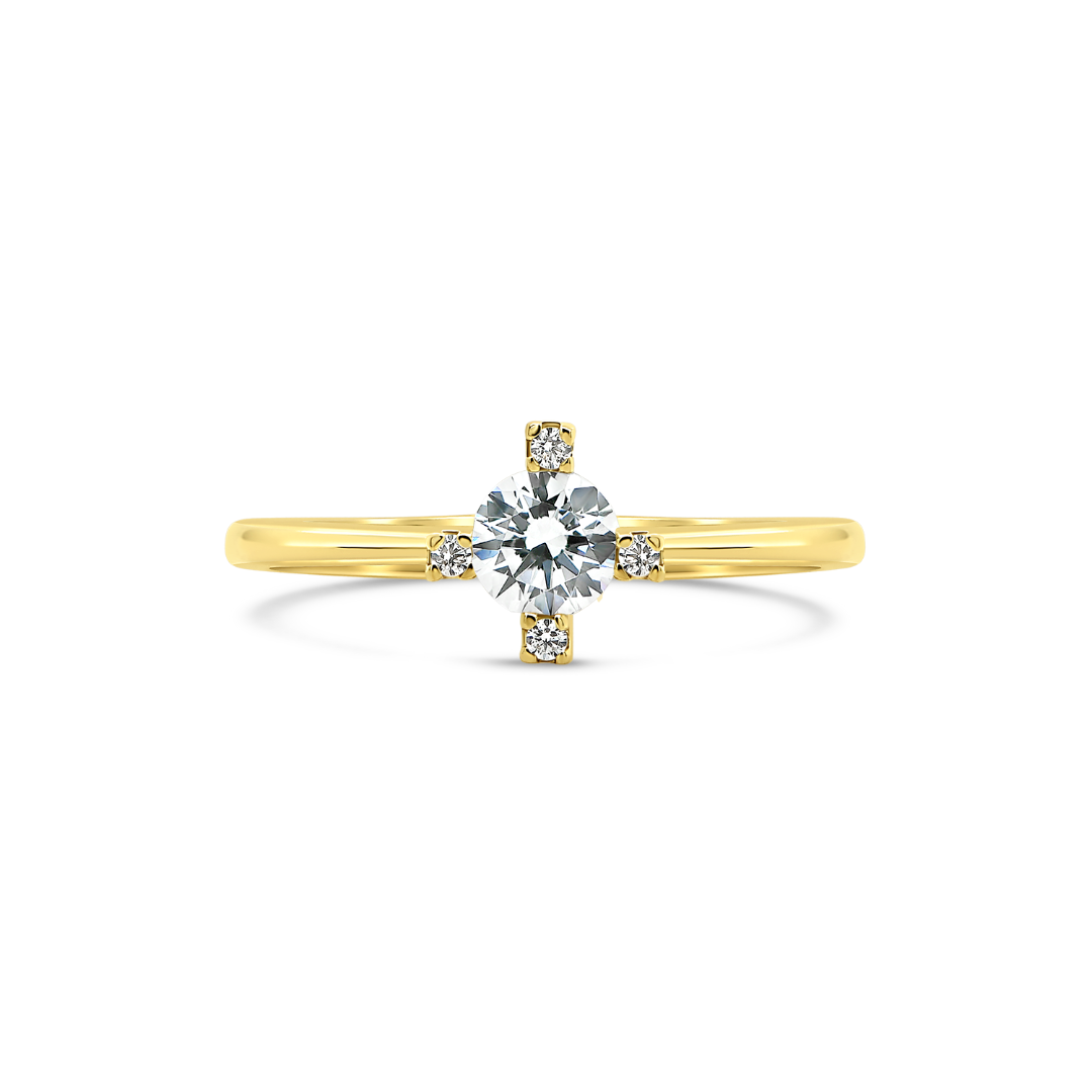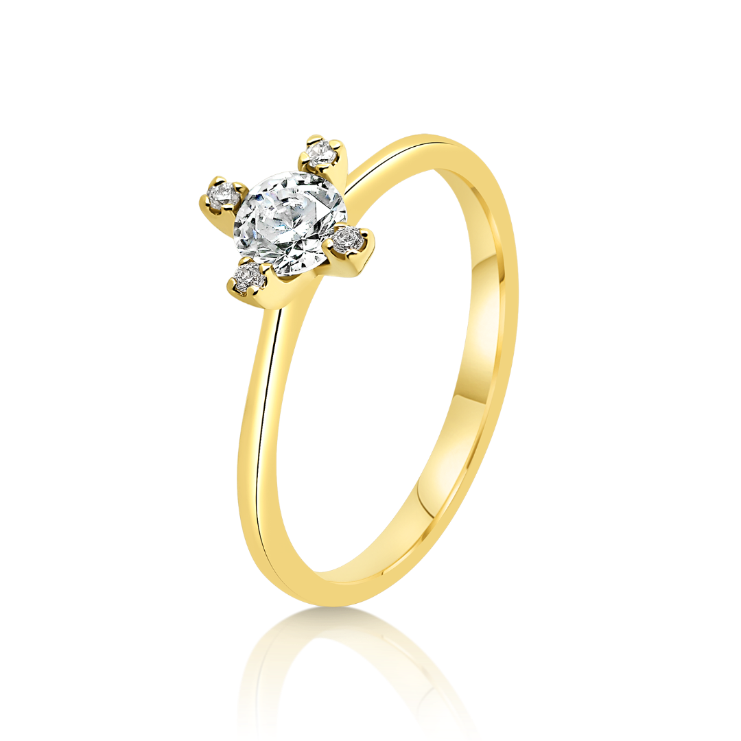 Inel de logodnă din aur galben de 14K cu Zirconia incolore.