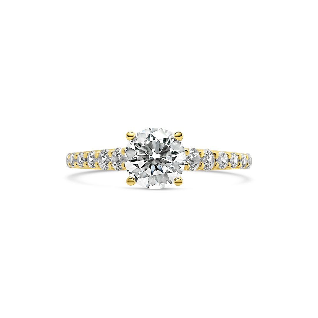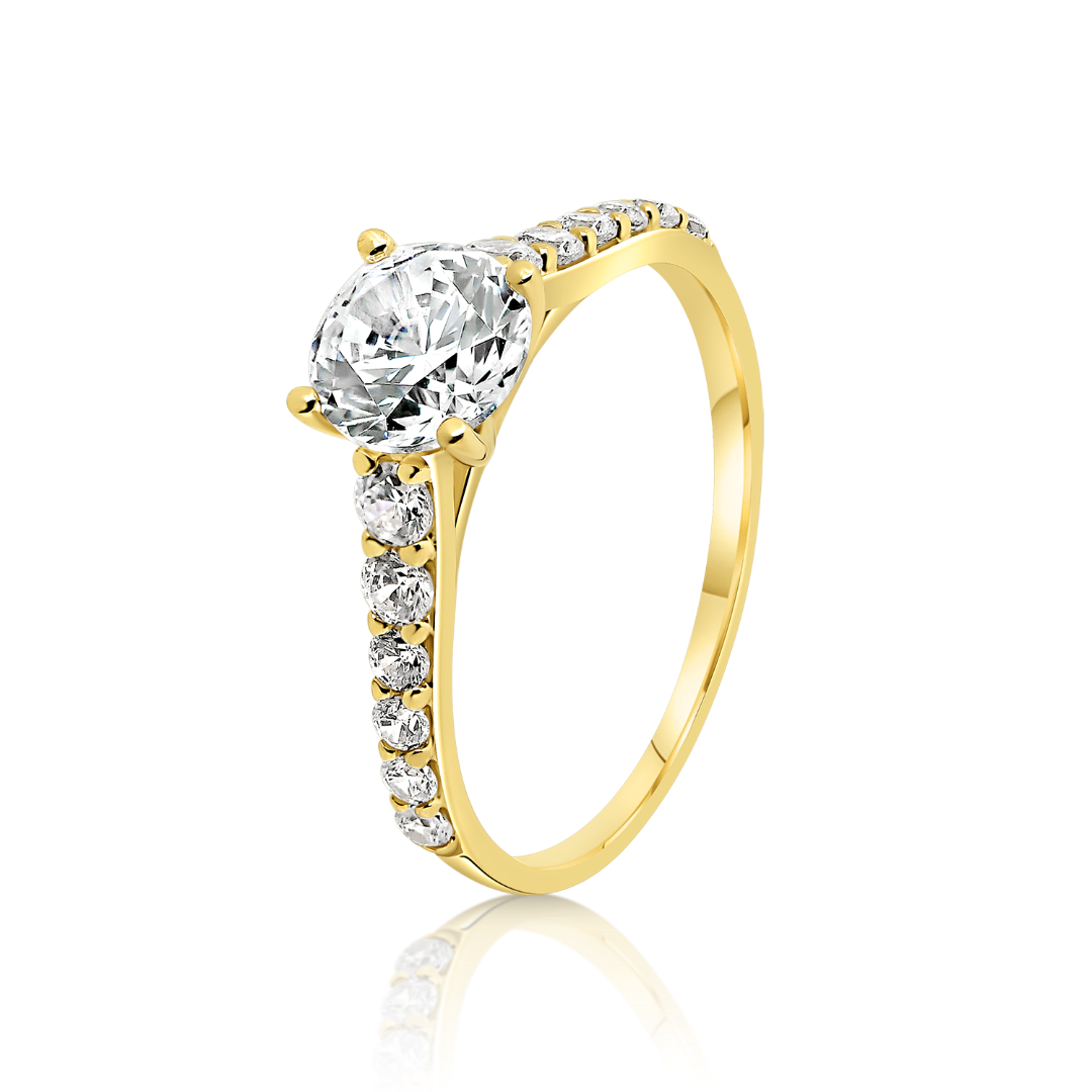 Inel de logodnă din aur galben de 14K cu zirconii incolore.
