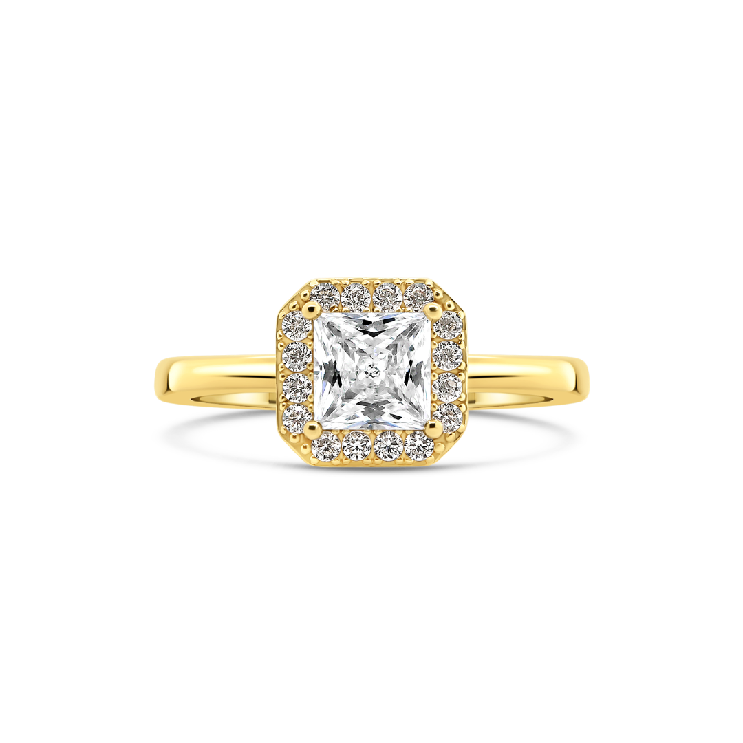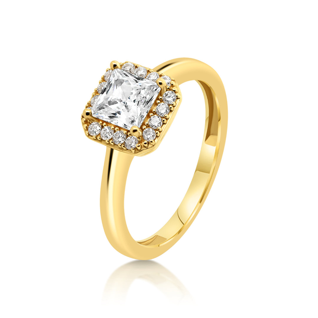 Inel de logodnă din aur galben de 14K cu pietre cubic zirconia.