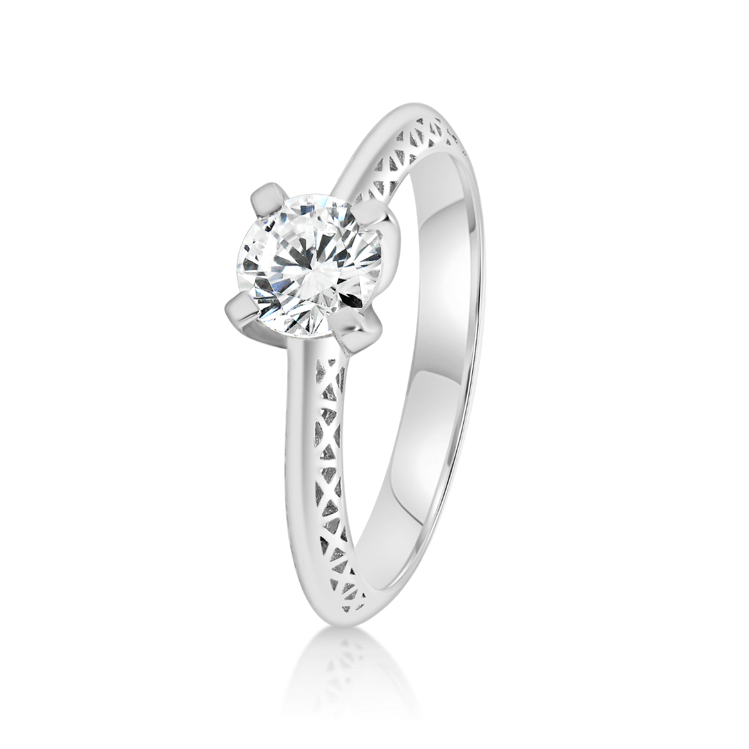 Inel din aur alb de 14K, cu pietre Cubic Zirconia și decupaje laterale.