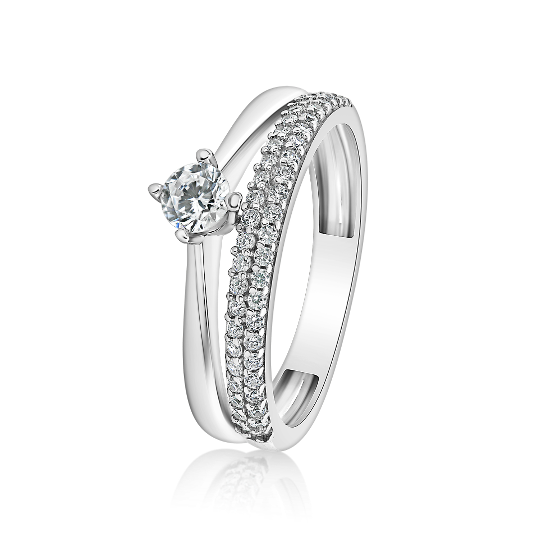 Inel din aur alb de 14K și pietre cubic zirconia.