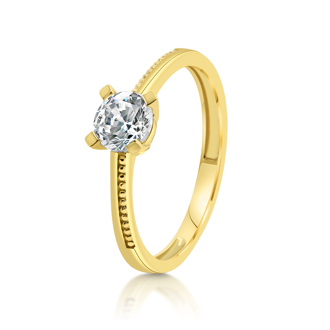 Inel de logodnă din aur galben de 14K cu piatră cubic zirconia.