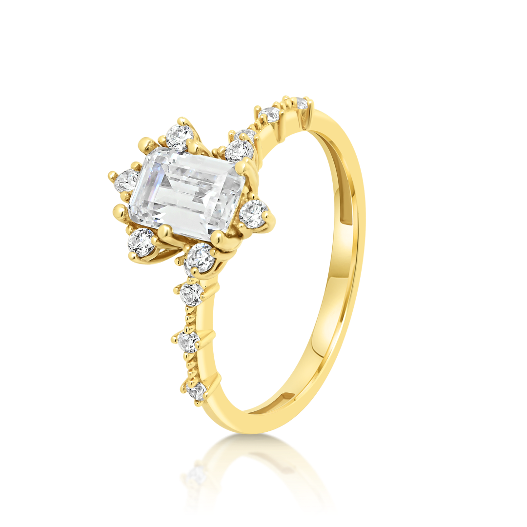 Inel din aur galben de 14K cu pietre cubic zirconia incolore.
