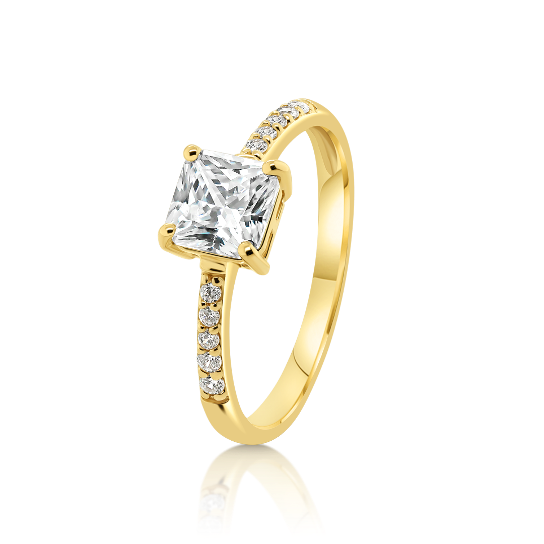 Inel din aur galben de 14K cu pietre cubic zirconia.