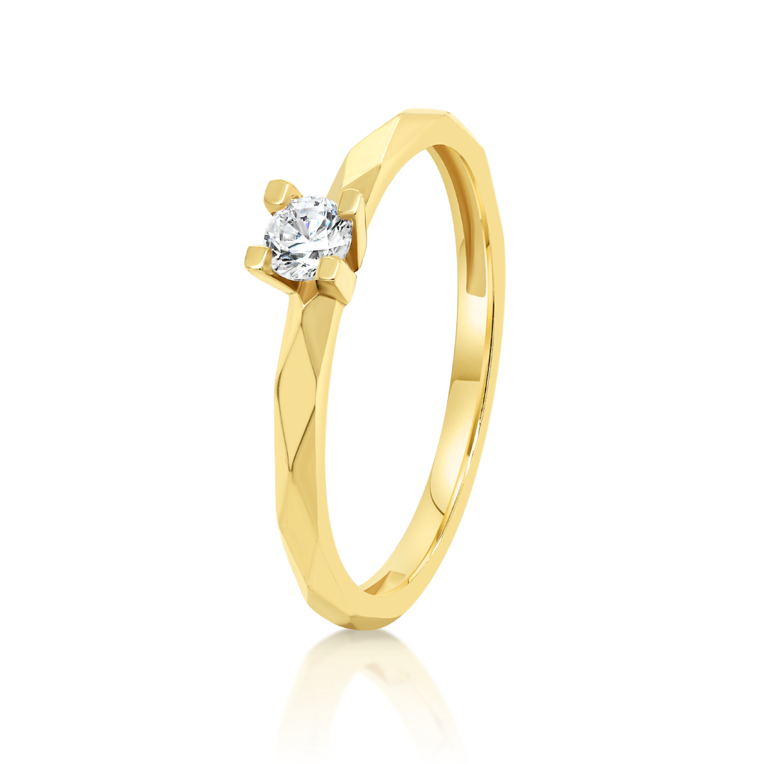 Inel de logodnă din aur galben de 14K cu piatră cubic zirconia.