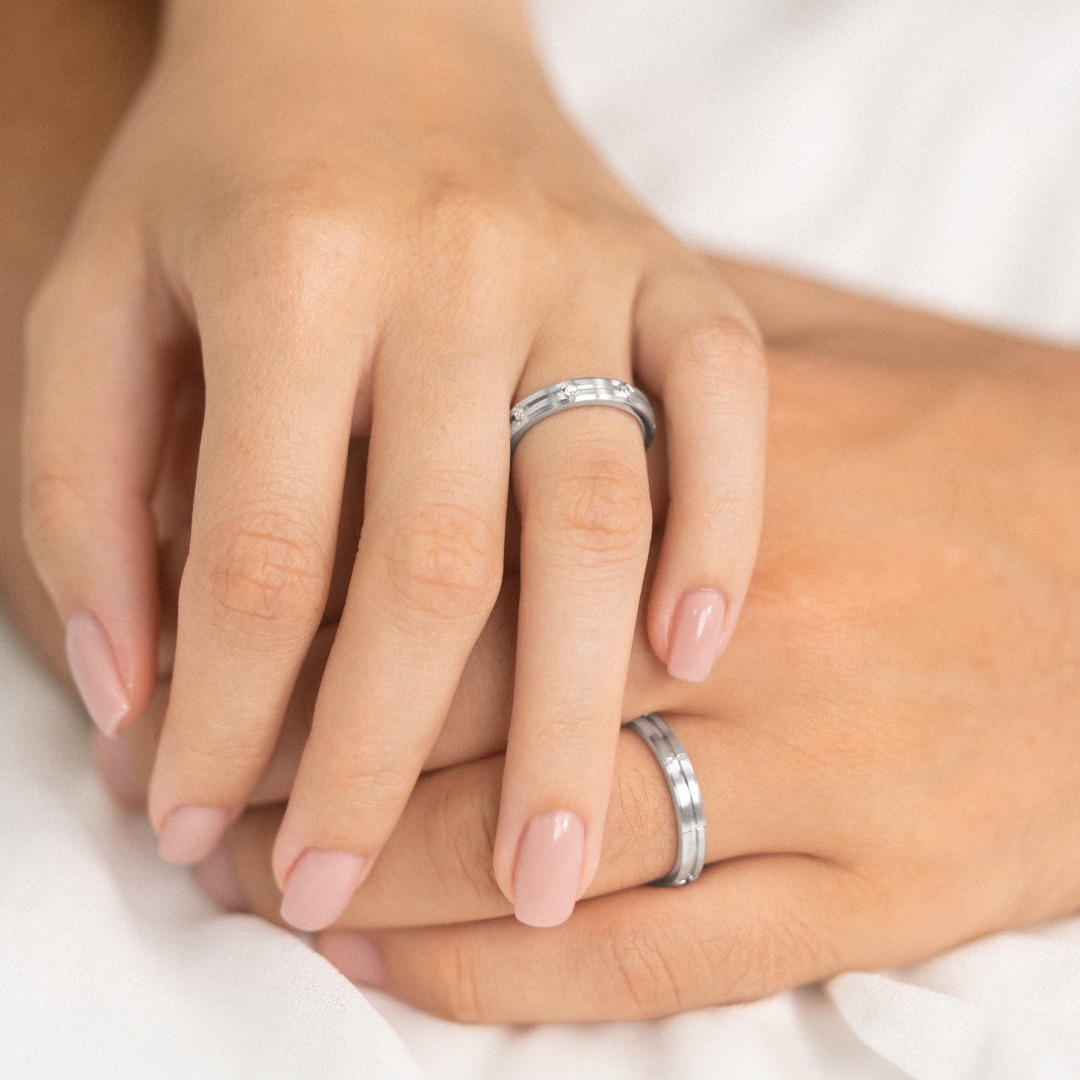 Pentru un plus de personalitate, fiecare verighetă poate fi îmbogățită cu pietre prețioase așezate în moduri creative sau cu mesaje gravate ce spun povestea voastră în cel mai intim mod posibil. Totul este realizat cu măiestrie de bijutierii noștri, care pun în fiecare detaliu eleganță, finețe și calitate ireproșabilă.